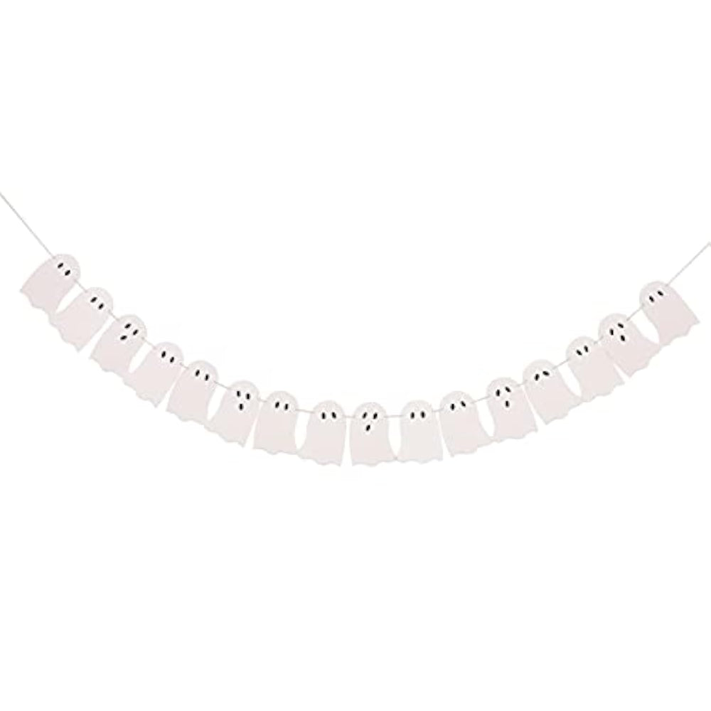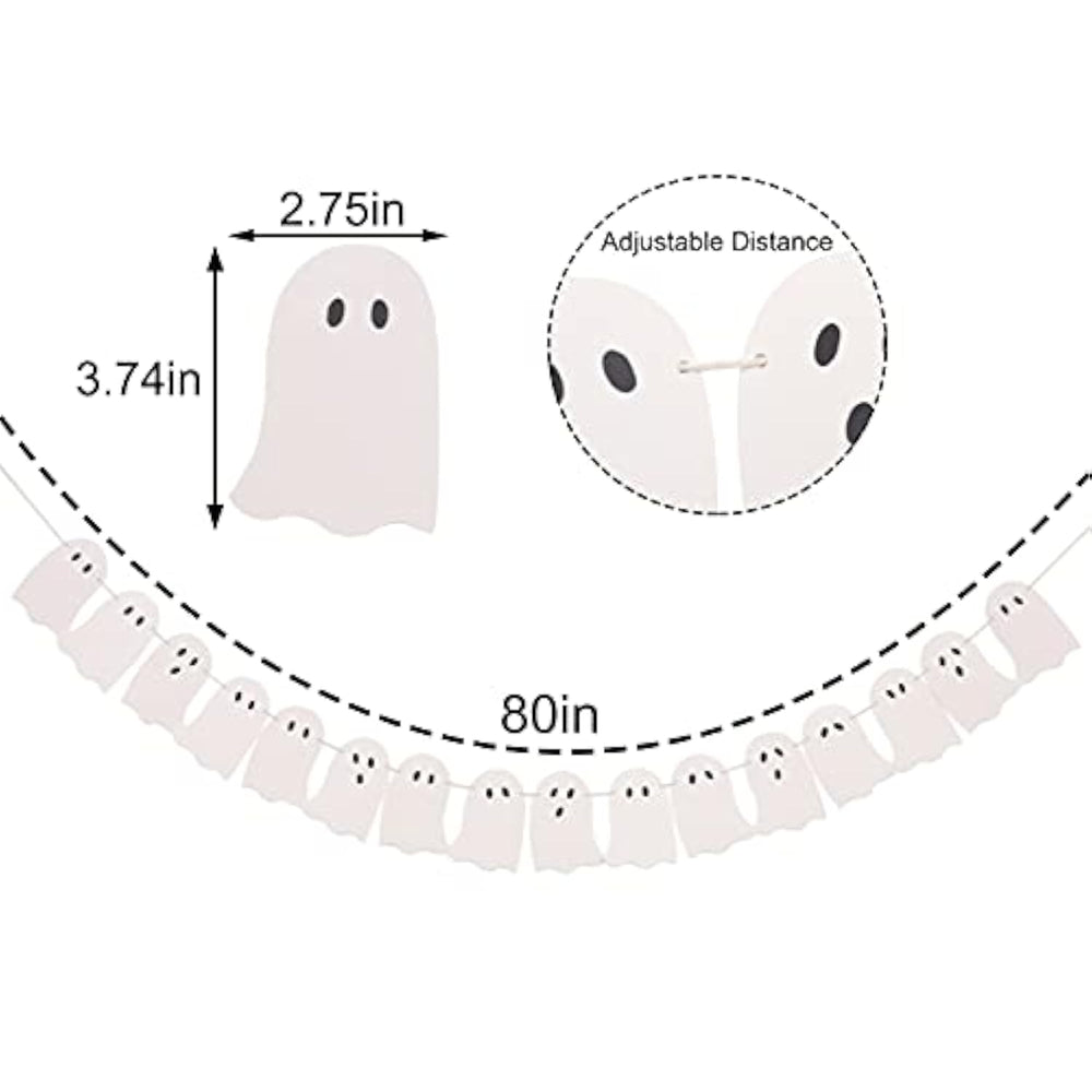 Add a playful touch to your Halloween décor with this cute ghost garland, perfect for walls, fireplaces, or any space that needs a little spook. The banner includes 16 white ghosts with unique expressions, each measuring 3.74" x 2.75", creating a fun and charming vibe. Made of eco-friendly cardstock and carefully handmade, every ghost has distinct details for a lively look. Easy to set up, just thread the cotton rope through the holes and hang it anywhere, with extra twine on each end for convenient decorating.