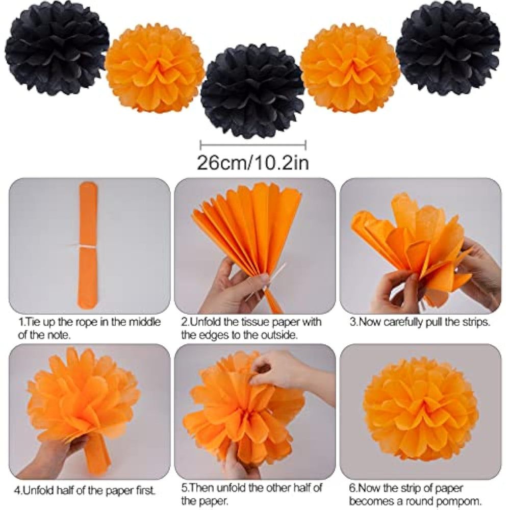 Bring a festive and spooky atmosphere to your Halloween celebrations with this Halloween Party Decoration Kit, designed with classic holiday elements like pumpkins, black hats, and hooded pumpkins in striking black, orange, and white. The kit includes 5 tissue pom poms (2 orange and 3 black, 10 inches each), 6 Halloween paper fans (2 black, 2 orange, and 2 assorted), 1 Halloween balloon paper string, 1 Halloween pennant string, 1 Halloween confetti wreath, 12 multicolor spiral streamers, and 3 pumpkin decorations, offering everything you need to create a complete, themed party setup. Crafted from degradable, reusable paper materials, these decorations are durable, fade-resistant, and easy to store when folded, making them perfect for repeated use at birthdays, children’s dress-up parties, ghost parties, or any holiday or themed celebration. Easy to assemble, each piece comes with all necessary accessories—simply fold, unfold, and arrange—allowing you to enjoy a fun DIY decorating experience while creating a vibrant and eye-catching display. This versatile set also doubles as a photo background or gift for friends and family, adding both charm and practicality to your festive preparations.