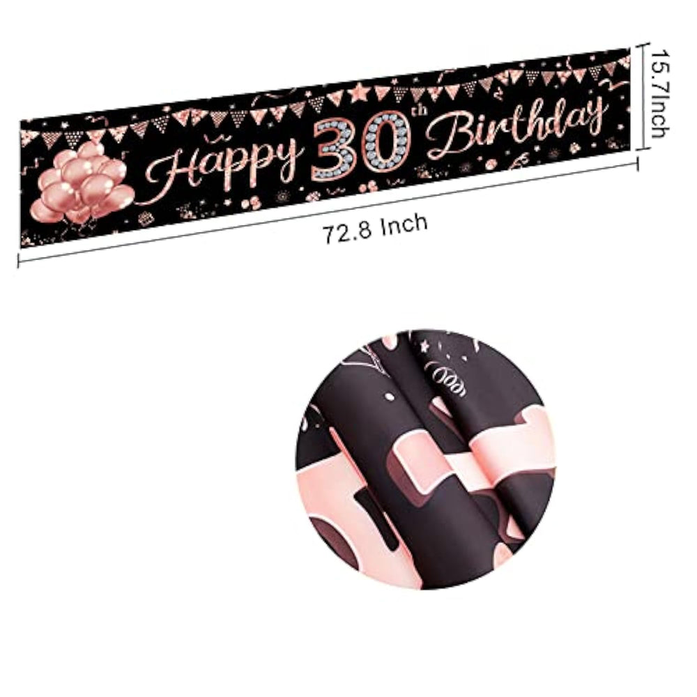 | [You Will Get]-"Happy 30Th Birthday" Banner Party Decorations. Beautiful Rose Gold Design To Decorate Your Unique 30Th Birthday Party. [Note: There Are No Poles Or Stakes In The Package] | | [Original Design]-Using Rose Gold Color, The Big Number "30" Composed Of Diamonds Is Shining. The Words "Happy 30Th Birthday" And Gift Boxes, Pennants, Ribbons, Stars And Other Beautiful Birthday Party Elements Highlight Your Birthday Party, Adding Strong 30Th Birthday Theme Party Atmosphere. | | [Ideal Size]-The Size Of This Hanging Banner Is 72.8 X 15.7 Inch. You Can Hang It On The Front Door, Porch, Wall, Window, Fence And Other Places To Decorate The Party. It Is Also A Good Photography Background. | | [Polyester Material]-Made Of High-Quality Polyester With Clear Printing. Light Weight And Easy To Carry, Not Easy To Tear, Reusable, And Washable. | | [Easy To Install]-Very Easy To Assemble. There Are 4 Copper Holes On The Four Corners Of The Banner. You Only Need To Use The Attached Rope To Pass Through The Copper Hole To Hang It Easily. | |