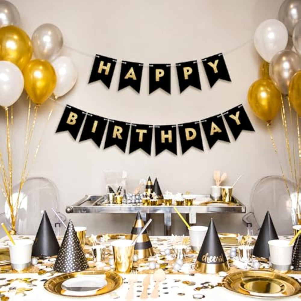 | Durable: Made Of Sturdy Cardboard, The Black Gold Happy Birthday Banner Is Sturdy And Reliable, And Stays Firm Throughout The Party. | | The Package Includes: A Happy Birthday Banner With 13 Letters. Each Flag Measures Approximately 17*21Cm/ 6.3*8.3 Inches (Length * Width), Ideal For Black Happy Birthday Banners, Birthday Decorations. | | Easy To Use: Birthday Banners Need To Be Self-Assembled, No Technical Content. Using The Included Ribbon To String The Letters Together, You Can Adjust The Spacing Between Each Letter Yourself. The Black And Gold Color Scheme Is High Fashion. | | A Variety Of Ways To Use: Birthday Banners Can Be Used As A Background, Hang Where You Need, Happy Birthday Banners Are A Good Choice Of Decorations, You Can Use It As A Happy Birthday Decoration. | | Product After-Sales: After Receiving Our Products, If The Parts Are Not Complete Or Have Other Problems, Please Leave A Message At The First Time, We Will Deal With It For You. | |