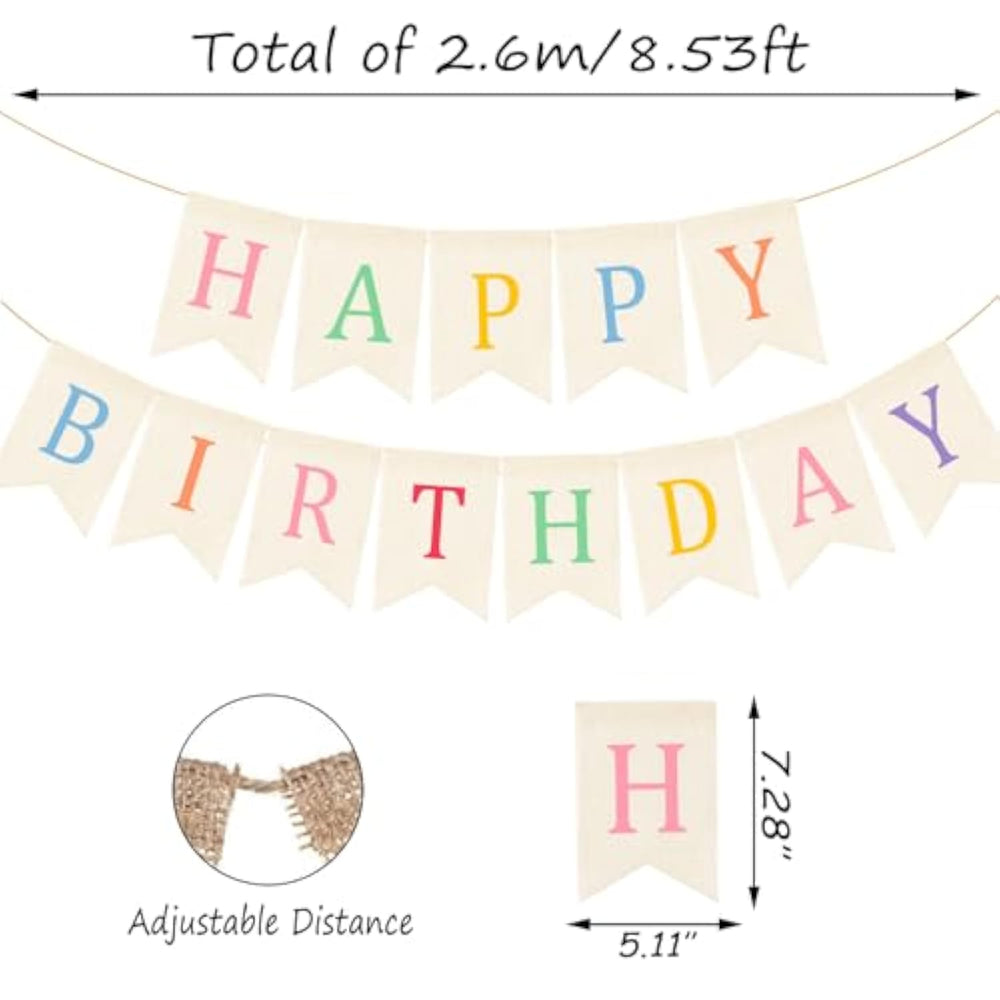 | Special Design: Package Contains 2Pcs Birthday Banner, Different From Common Birthday Burlap Banner, This Banner Is Printed On White Burlap And Features A Charming Rainbow Design With Fun And Playful Lettering. The Colors And Design Add A Touch Of Warmth, Making Your Birthday Party Unique | | Premium Material: The Birthday Banner Is Made Of Good Quality Burlap, Odorless And Non-Toxic, Can Use For A Long Time, Also Can Be Folded Easily For Storage.It'S Perfect For Your Birthday Party Celebrations Or Other Special Occasions Decor And Will Add A Perfect Decorations For Your Party | | No Diy Required: The Happy Birthday Banner Are Pre-Assembled, Easy For Hanging On Dining Room, Mantle Fireplace, Window, Wall, Outside Porch, Dessert Tables, Buffet Tables, Gift Tables On Kitchen Cabinets, Entryway, Furniture Or Use As A Awesome Photo Backdrop, Which Will Make A Beautiful Additions To Your Party Decor | | Perfect For Any Age Birthday Events: Perfect For Any Themed Birthday Party Decorations, Boys And Girls Birthday Banner, Birthday Decorations For Men Women, Making It A Great Choice For Birthday Celebrations Of All Kinds, Create A Cheerful And Warm Atmosphere To Your Party | | Birthday Decoration: Use This Lovely Banner To Celebrate Yourself Or Family, Friend’S Birthday That Remain A Forever Memory. Best Birthday Celebration Are Remembered By The Outstanding Party Decoration Idea, Gift Idea From Loved Ones, First Birthdays, And Other Occasions | |