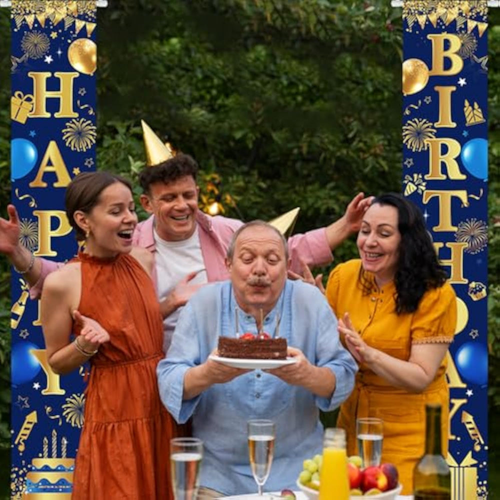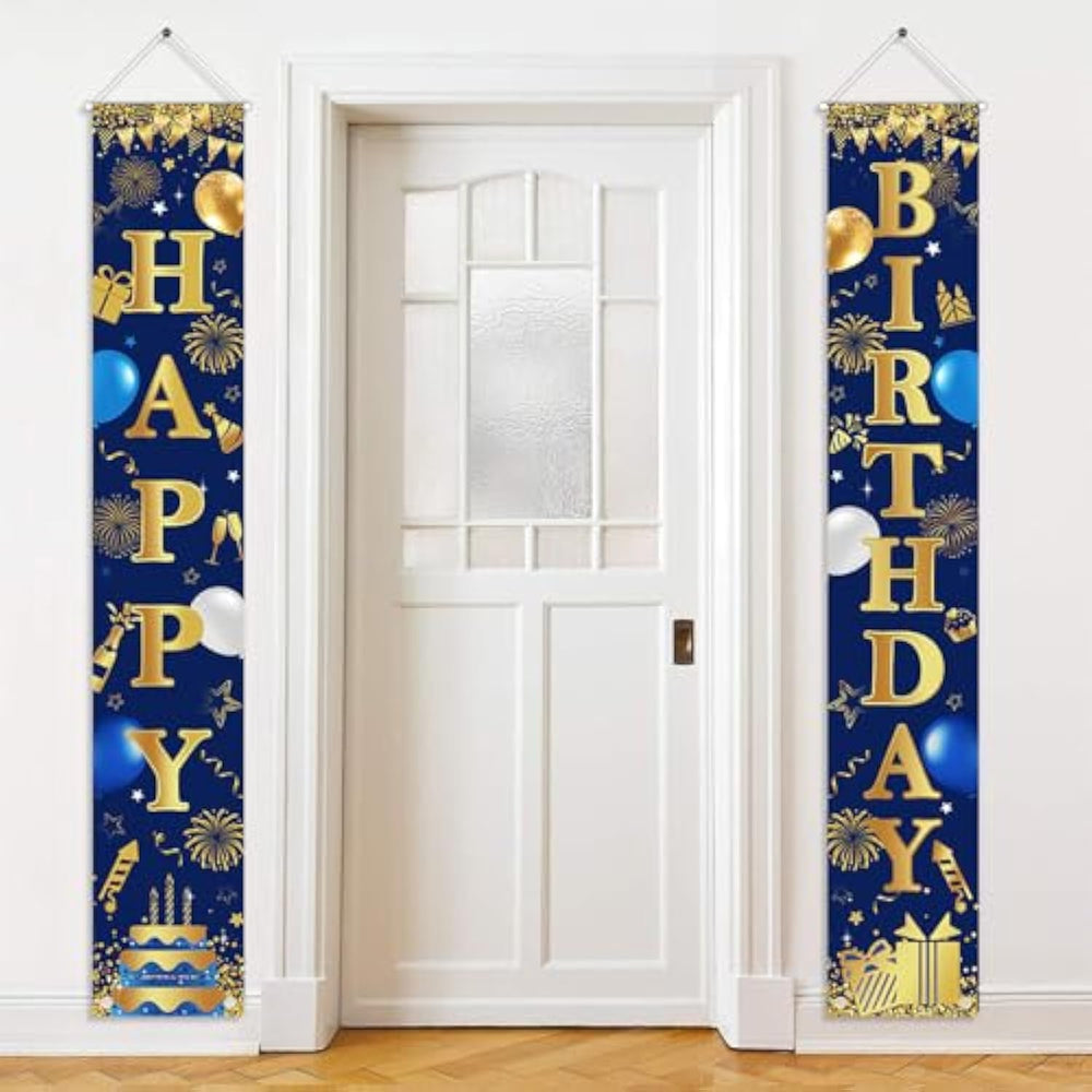 | Size Package: 2 Pcs Happy Birthday Porch Signs Included, Both In The Size Of 71"L X 12"W | | Material: Polyester Fabric, Light Weight, No Chemical Smell; Lasting Bright, Soft To The Touch | | Wide Application: The Navy Blue Gold Birthday Porch Banner Make Your Birthday Party Decorations, Family Gathering; Home Decor, Yard Decor And Other Occasions Have A Strong Happiness Atmosphere; Hang Them On Front Door, Entrance Of Your Birthday Party, Fireplace, Garden Wherever You Like To Decorate | | Advantage: Designed By Our Professional Designers, High-Resolution Computer Printing, Each Porch Sign Has The Best Shooting Effect | | Warm Tips: Choose A Warm Washing Way, Air Dry Naturally, Low Temperature Ironing | |