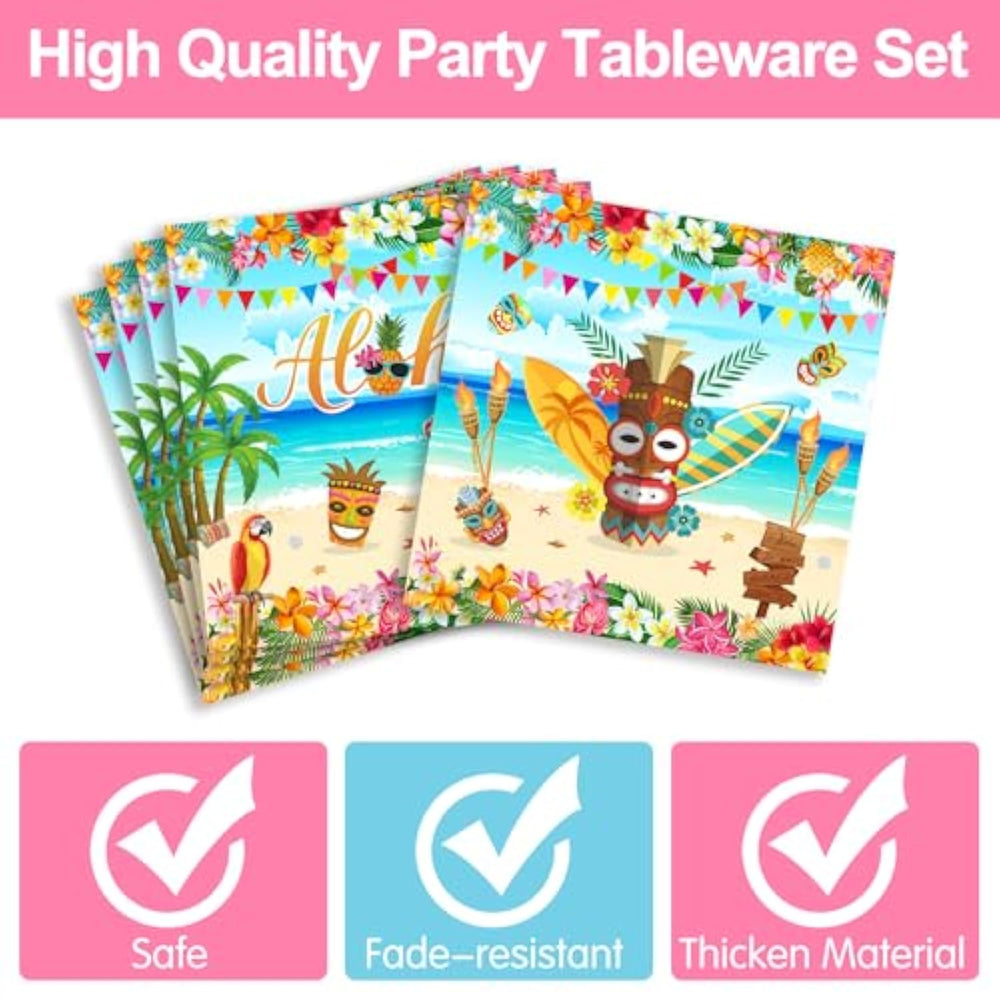 | Hawaiian Aloha Party Supplies: Summer Is Coming. Our Aloha Party Plates Set Will Bring Your Family And Friends To An Exciting Hawaiian Party With These Colorful Hawaiian-Themed Supplies And Decorations! Create A Party Vibe And Enjoy This Good Time For Summer Adventures | | Hawaiian Flamingo Party Supplies: This Hawaiian Theme Party Decorations Tableware Set Includes 24Pcs 9'' Dinner Paper Plates, 24Pcs 7'' Dessert Paper Plates, 24Pcs Napkins, 24Pcs Cups, 24Pcs Forks, 24Pcs Spoons, 24Pcs Knifees, For Summer Tropical Birthday Party Supplies | | Widely Applilcations: Our Hawaiian Aloha Birthday Party Decorations Is Perfect For Luau Birthday Parties, Tropical Moana Birthday Parties, Aloha Theme Parties, Summer Beach Birthday Parties, Luau Baby Party Parties, Etc | | Easy To Clean: Our Plates, Napkins Is Made Of Quality-Thick Paper. This Tableware Is Designed As Disposable Items. Nice Looking, And Make Clean-Up A Breeze! You Can Pack It After The Party, Which Is Very Convenient | | Satisfied Experience: If You Have Any Questions About This Product, Please