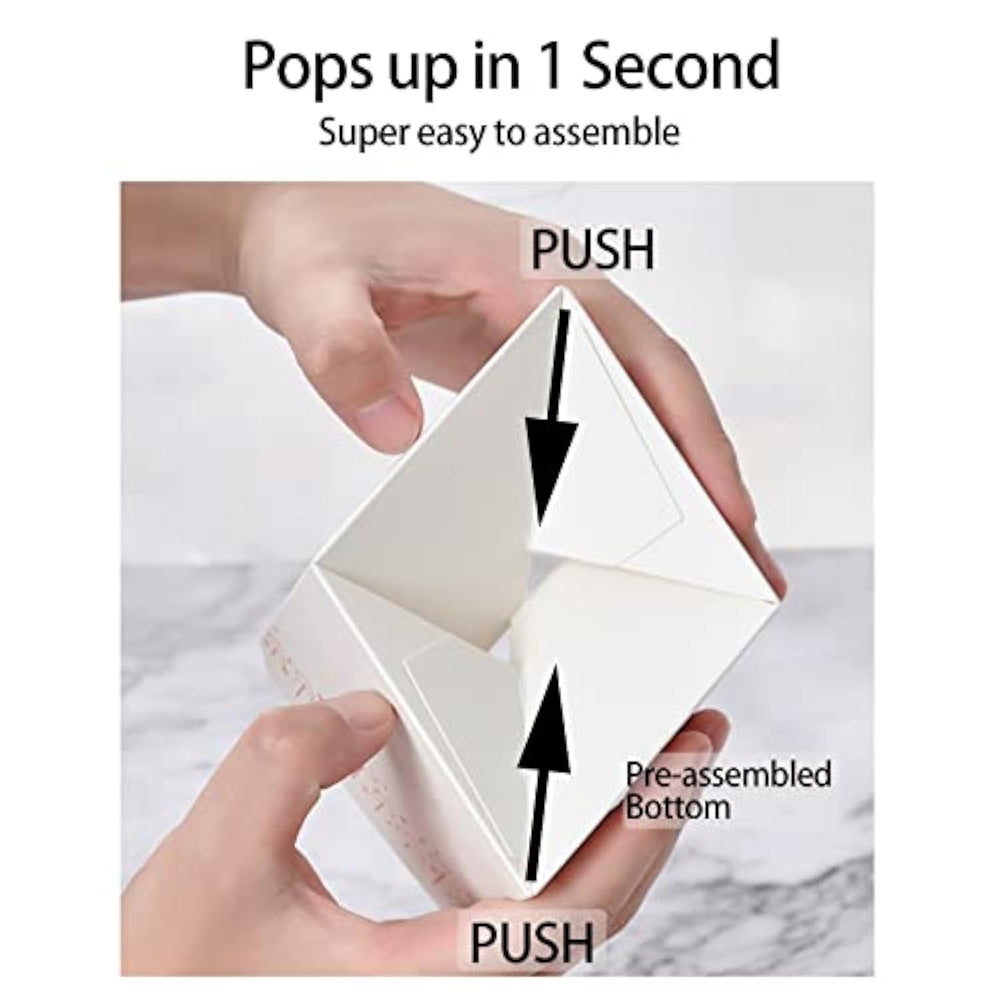 | Easy Assembly Pop-Up Structure - All You Need Is To Simply Squeeze The Sides Of The Box, And It Pops Up Into Shape Ready To Be Used, Saving You A Ton Of Time. | | Dimensions - 3.5" L X 3.5" W X 3.5" D Cupcake Containers; Insert Diameter Adjustable From 1.8" To 2.4", Fits Either Mini Cupcakes, Regular-Size Cupcakes, Or Jumbo Cupcakes Simultaneously, Suitable To Pack Muffins, Coca Bombs, Cookies, Macarons, Candies, Etc. | | Recyclable Sturdy Cardboard Material - Made Of Food-Grade Extra Sturdy Cardboard Paper, Stronger Weight-Bearing For Safer Transportation, More Environment-Friendly Than Plastic Packagings | | Package Quantity - 25 Single Cupcake Holders + 25 Inserts Only, Cupcakes Not Included; Shipped Flatly Packed For Saving Storage Room Before Use | | For All Event Favor Boxes - The Large And Clear Window Is Perfect And Professional To Display Goodies For Bake Sales, Gift-Giving, Homemade Treats, And Takeaways After Parties Like Weddings, Birthdays, Baby Showers, Events Celebrations, Etc. | |