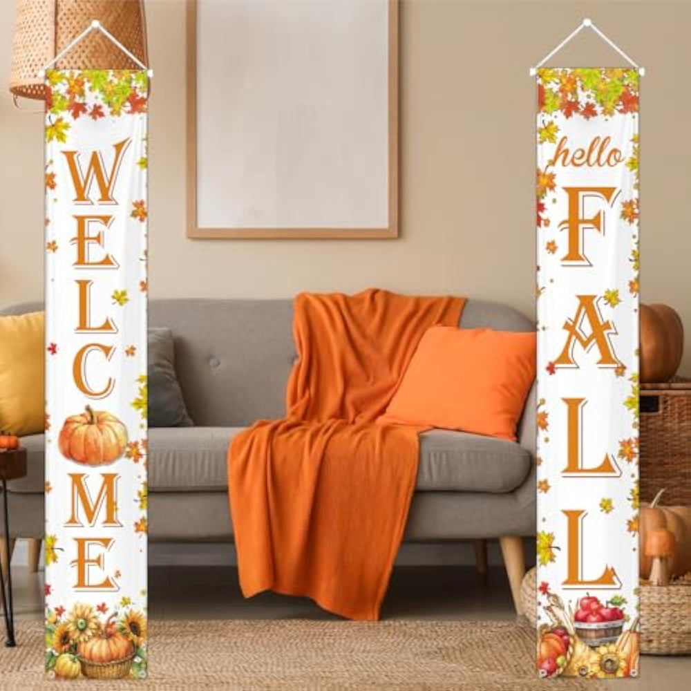 | Size: 1 Set Includes 2 Pieces Of Porch Signs. You Will Get 2 Pieces Pumpkin Thanksgiving Porch Banner, Each Banner Measures Approximately 180 X 30 Cm / 71 X 12 Inches | | Special Design:Hello Fall Maple Leaves Decorations Features Beautiful Fall Motif With Maple Leaves, Pumpkins, Sunflowers, And Harvest Apples Creating A Warm Autumn Atmosphere | | Sturdy And Reusable:Autumn Decorations Hanging Banner Is Made Of Safe Polyester Material, Lightweight And Long Lasting, Reusable Hello Fall Porch Banner Has Nice Wear Resistant And Fade Resistant Performances, And Is Sturdy Enough For You To Use For A Long Time, This We Can Bearly Wait Porch Sign Hanging Door Banner Can Make Your Festival Unique | | Work For: Suitable For Front Porch Posts, Entryway Columns, Door Frames, Or Indoor Wall Decoration During Fall Season | | Easy To Hang: Each Welcome Hanging Decoration For Indoor Outdoor Is Topped With A Tie Rod To Add Weight To The Irish Banner In Your Front Porch | |