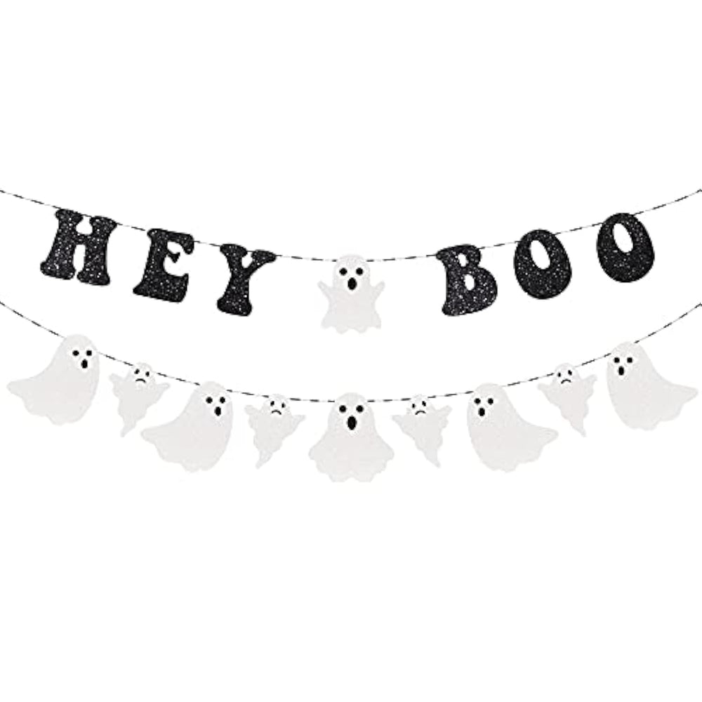 This set includes a black glitter “Happy Halloween Hey Boo” banner and a white ghost banner, perfect for adding a spooky and playful vibe to your Halloween night. Each banner measures about 60 inches long, making it great for decorating walls, mantels, doorways, or party backdrops. Made from lightweight, durable glitter cardstock, the banners are reusable and won’t easily deform. Both come pre-strung and pre-assembled, so you can simply unfold and hang them up—quick, convenient, and festive Halloween décor!