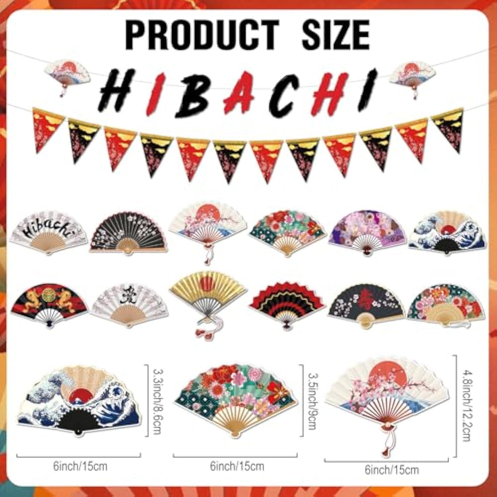 | Package Includes: This Hibachi Party Decorations Set Includes 1 Banner, 1 Pennant, And 12 Folding Fan-Shaped Hanging Swirls—Providing Everything You Need To Set The Stage For A Festive And Japanese Birthday Celebration | | High-Quality Materials: Made From Premium, Lightweight Yet Sturdy Materials, These Japanese Birthday Decorations Are Designed To Maintain Throughout Your Event. Each Piece Is Carefully Crafted For Durability And Can Be Reused For Future Hibachi Or Japanese-Themed Party | | Easy To Use: These Hibachi Party Decorations Come Pre-Assembled And Ready To Use—Simply Take Them Out Of The Package And Place Or Hang Them As Needed. With No Additional Setup Required, They Make It Easy To Instantly Transform Your Space Into A Festive Celebration Scene | | Japanese Themed Design: Featuring Traditional Japanese Elements Such As Plum Blossoms, Cherry Blossoms, And Folding Fans, This Hibachi Party Set Brings A Touch Of Cultural Charm To Your Celebration. The Detailed Illustrations And Festive Designs Help Create An Immersive Atmosphere That Guests Of All Ages Will Enjoy | | Wide Application: Perfect For Hibachi Birthday Party, Japanese Cultural Events, Or Themed Celebrations, This Versatile Decoration Set Works Beautifully In Both Indoor And Outdoor Settings. Whether At Home, In A Restaurant, Or A Party Venue, It Helps Create A Immersive Atmosphere Your Guests Will Love | |
