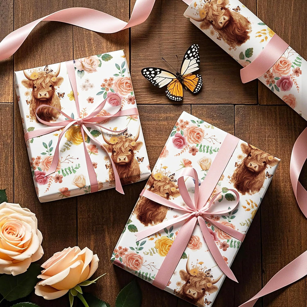 | Perfect Size: Each Roll Measures 17 Inch Wide X 16.5 Feet Long. Providing You With A Total Of 23.25 Square Feet Of Paper, Perfect For Any Small Or Medium Sized Gift. Highland Cow Floral Design: Endearing Highland Cows Adorned With Floral Crowns And Delicate Flowers, Rustic Elegant Look, Will Make Your Gift Beautiful And Shining. Premium Quality: Created With High-Quality Paper Materials, Thick And Not Easily Tear Or Rip. Item Came With Shrink Film To Prevent Wrapping Paper From Scratches And Reduce Dust. Use All Occasion: Perfect For Wedding, Birthday, Baby Shower And Other Special Occasions Gifts Wrap. It Is Also Great For Diy Craft Project And And Other Artistic Inspirations. Quality