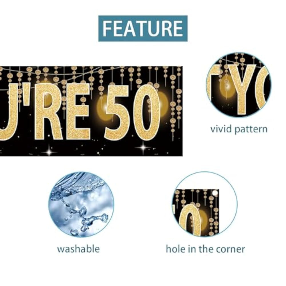 | ???Large Size?The Size Of This Banner Is 20*118 Inch, 50*300 Cm. It Is Big Enough To Be Noticed. You Can Hang It High And Conspicuously, So Guests Coming To Your Party Can Easily See This Sign From A Distance. Guests Will Also Marvel At The Beauty Of This Banner. | | ???Impressive Design?Our Banner Is Designed By Professionals With The Most Popular Design Elements Of The Moment That Can Add Uniqueness And Brilliance To Your Party. When Your Friends Attend The Party, They Will Surely Feel Brightened By The Unique Decoration. | | ???High Quality Material And Durability?This Banner Is Made Of High Quality Polyester Fiber. It Is Washable, Light Weight, Easy To Carry, And Not Easy To Tear. It Can Be Used Both Indoors And Outdoors, Even When It Is Windy And Raining. | | ???Good Decoration??? Use Scene: You Can Hang It On Lawn, Yard, Fence, Wall, Etc. ?? Photography Background: It Can Help You Take More Wonderful Photos And Make More Unique Memories For Your Party. | | ???Easy To Use And Install?This Banner Has Four Brass Rings Distributed In The Four Corners, Plus It Comes With A Long Enough Sturdy Rope (Reminder: No Pole Included). You Can Easily Run The Rope Through These Holes And Hang The Banner In The Desired Position. | |