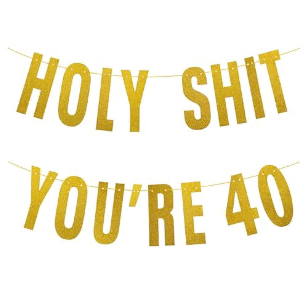 | A Must-Have For The 40Th Milestone - Capture The Memories With This Unique 40Th Birthday Banner! Its Eye-Catching Design Doubles As The Perfect Photo Backdrop, Ensuring Your Party Pictures Shine On Social Media And Beyond. Ideal For Celebrating Her Or Him Turning 40, This Decoration Brings Laughter And Charm To The Special Day. | | Sparkling Gold Design - Be The Life Of The Party! This “Holy Shit You’Re 40” Banner Features Glittering Gold Letters That Shine Brilliantly Under Lights, Creating A Festive And Glamorous Vibe For Your 40S-Themed Celebration. Perfect For Women, Men, And Anyone Saying Goodbye To Their 30S With Style. | | Easy To Install And Reuse - Designed With Pre-Punched Holes For Hassle-Free Hanging. This Versatile Party Décor Works Great On Walls, Doorways, Or Table Backdrops, Making It The Ideal Decorations For Her Birthday Or A Funny Gifts For Him. Quick And Easy To Store, It’S Perfect For Future Celebrations, Too! | | Humorous Party Decor - Make Your Milestone Birthday Unforgettable With A Touch Of Humor! This Fun And Quirky Decoration Is A Great Way To Celebrate Turning 40, Whether For Women Or Men. It’S Also A Fantastic Party Favor Or Funny Gift Idea For Anyone With A Sense Of Humor. | | Durable And Eco-Friendly Material - Made From Sturdy, Lightweight Cardstock With Eco-Friendly Glitter Coating That Won’T Shed. Perfect For Both Indoor And Outdoor Use, This Decoration Is Ideal For Party Favors Or As A Happy Reminder Of The Big 4-0 Milestone. | |