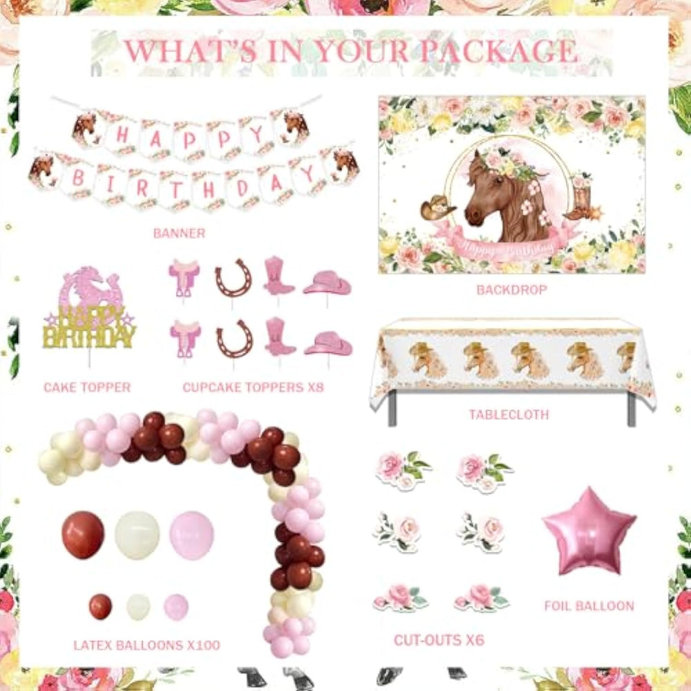 Soft And Elegant Pink Horse Party β Your Girl Is Very Much In Horses The Horse Will Be One Of The Perfect Themes To Celebrate Her Birthday. The Horse With Floral Patterns Creates A Soft And Elegant Vibe. The Striking Western-Styled Decorations Also Give This Party A Distinctive And Wild Feeling. Your Girl Would Love This Amazing Pink Horse Party | Horse Party Decorations For Girl Includes - 70 X 12ββ Latex Balloons | 30 X 5ββ Latex Balloons | 1 X 18ββ Pink Star Foil Balloon | 6 X Flower Cutouts | 1 X Backdrop | 1 X Banner | 1 X Tablecloth | 1 X Cake Topper | 8 X Cupcake Toppers | Balloon Strip | Glue Dots | Ribbons | Excellent Choice β This Western Themed Birthday Decorations Kit With All You Want For Your Horse-Themed Party. It Helps You To Save Time And Money. Some Of The Decorations Could Be Reused For The Gender Reveal, Baby Shower, Themed Party, Bridal Shower, Anniversary... Click To Have This Excellent Set | Easy Fun To Assemble β Helping You Easy To Decorate Is Our Pleasure. Most Of The Decorations Are Pre-Assembled And Convenient For You. You Can Decorate According To The Effect Picture, Or Diy To Create A Unique Party. Either Way, This Pastel Pink Horse Themed Birthday Party Will Be An Unforgettable Memory For Everyone At Your Party | 100% Satisfactory Service β We Want You To Be Happy And Satisfied When You Receive Our Product. If You Need Any Assistance Or You Have Any Unhappiness, Please Let Us Know. We Will Issue A Refund Within 24 Hours. This Product Is From Brand. - Click To Find More Various Party Decorations |