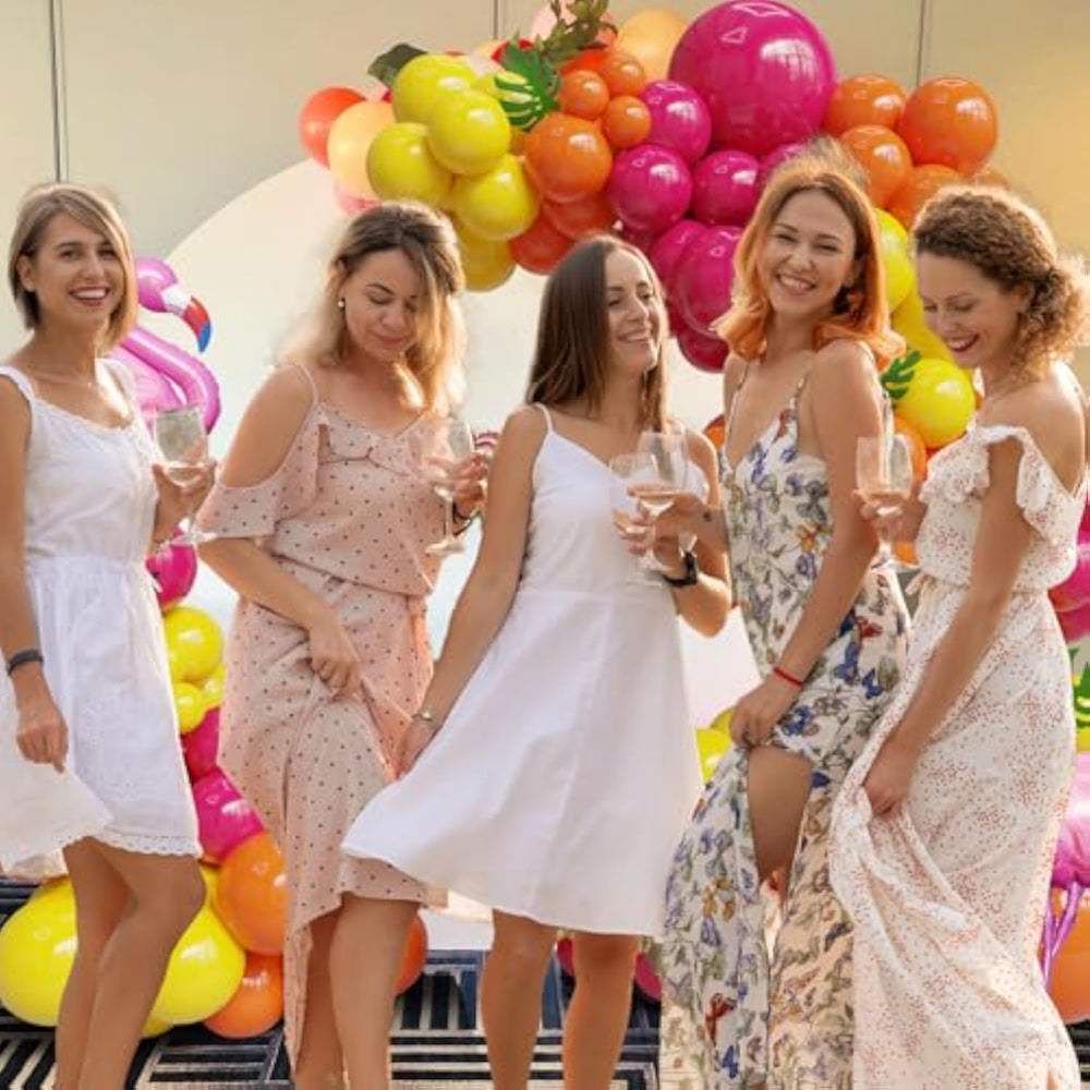 | Pink And Orange Balloon Arch: This Comprehensive Set Includes 151Balloons In Shades Of Hot Pink, Orange, And Yellow, Along With 10Pcs Tropical Leaves. It'S Ideal For Creating A Bright Color Balloons Backdrop For Any Festive Occasion. | | Flamingo Themed Decorations: Elevate Your Hawaiian Luau, Flamingo Themed Party, Or Any Summer Bash With Our Vibrant Balloon Colors And Tropical Accessories. From Beach Parties To Tropical Bachelorettes?Golden Girls Party, This Set Sets The Perfect Tone. | | All-In-One Kit: Besides Balloons In Assorted Sizes, This Kit Includes Special Shaped Balloons Like Flamingos And Palm Leaves, Transforming Any Space Into A Tropical Paradise. Perfect For Birthdays, Showers, And Any Festive Gatherings?Pineapple Balloon Kit. | | Durable And Vibrant: Crafted From High-Quality Materials, These Balloons And Decorations Are Designed To Last Throughout Your Event, Ensuring A Bright, Lively Environment With Their Vivid And Durable Colors. | | Easy Assembly: Equipped With A Three-Piece Balloon Tool Set Including Glue Dots, Ribbon, And A Chain, This Kit Makes Setting Up Your Fiesta Decoration Effortless And Quick, Suitable For Both Indoor And Outdoor Settings | |
