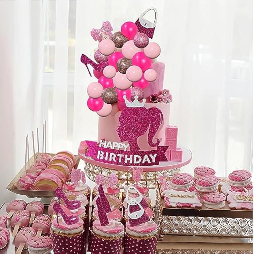 | Stunning Girl Cake Decor: Elevate Your Cake With Hot Pink Glitter Happy Birthday Girl Cake Topper, Measuring 6.3 X 5.1 Inches, And Make Your Birthday Celebration Truly Enchanting. | | Charming Cupcake Accessories: This Set Includes 12 Charming Girl Cupcake Toppers, With 6 In Hot Pink And 6 In Soft Pink, Adorned With Girly Elements Like Purses, High Heels, And Lipstick, Adding A Touch Of Elegance To Your Cupcakes. | | Dazzling Balls For Cake Decorations: Enhance Your Cake With 20 Shimmering Cake Decoration Balls In Various Shades - 7 In Pink, 7 In Hot Pink, 3 In Glittering Rose, And 3 In Glittering Rose Gold, Creating A Dazzling Spectacle. | | Versatile And Stylish: Perfect For Birthdays, Baby Showers, Or Any Girl-Themed Parties. Mix And Match These Decorations To Suit Your Style Or Use Them Separately For Cupcakes And More. | | Easy And Convenient: These Decorations Are Easy To Use And Will Transform Your Cake Into A Princess Masterpiece Effortlessly. | | Premium Quality, Food-Safe: All Decorations Are Crafted From High-Quality Materials, Ensuring They Are Food-Safe And Ready To Adorn Your Delicious Cakes And Cupcakes Without Any Worries. | | Satisfaction : We Offer A 30-Day Money-Back . If You Have Any Concerns, Please Don'T Hesitate To