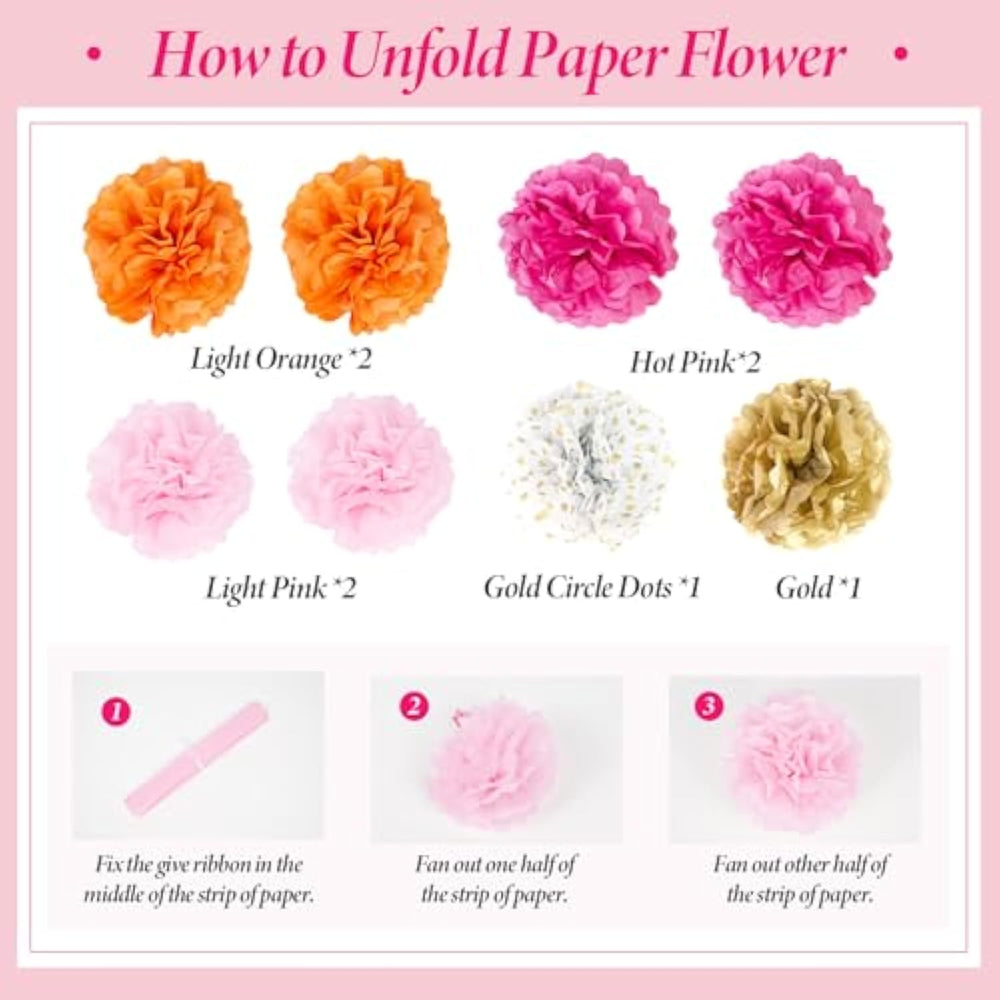 | Package Includes:The Orange And Pink Party Decorations Include 8Pcs Paper Pompoms Light Pinkx2, Light Orangex2, Hot Pinkx2, Goldx1, 12Inch Balloonsx20 Light Pinkx5, Orangex5, Hot Pinkx5, Goldx5, 12Inch Gold And Pink Confetti Balloonsx5, Happy Birthday Bannerx1, 4 Color Paper Tasselsx1, Circle Garlandx1, Glue Dotsx100, Decorative Stripx1, Ribbonx1 | | Good Balloons:The Sunset Party Decorations Are Made From Good Quality Latex That Is Easy To Inflate, Not Easy To Pop. It Is Recommended To Use A Hand Pump To Inflate Quickly, But Do Not Over Inflate To Maintain Good Shape | | Ease Of Assembly?It Comes With Ribbon, Glue Dots, And Decorative Strip, Making The Pink And Orange Balloon Kit Easy To Assemble. Inflate The Balloons To Different Sizes With A Balloon Pump, Insert The Balloon Knot Into The Decorative Strip Holes, Or Tie Them Together With The Ribbon To Form Balloon Clusters, Then Hang Them On The Party Backdrop. | | Used In Various Occasions:This Pink And Orange Birthday Decorations Is Great For Any Party Event, Such As Teen Birthday Decorations, Pink Birthday Decorations, Orange And Pink Party Decorations, Hot Pink Party Decorations, Birthday Decorations For Women | | Warm Reminder: We Are Committed To Providing Great Service. If There Are Any Problem With The Balloon Kit, We Will Make An Effort To Solve Them Until You Are Satisfied | |