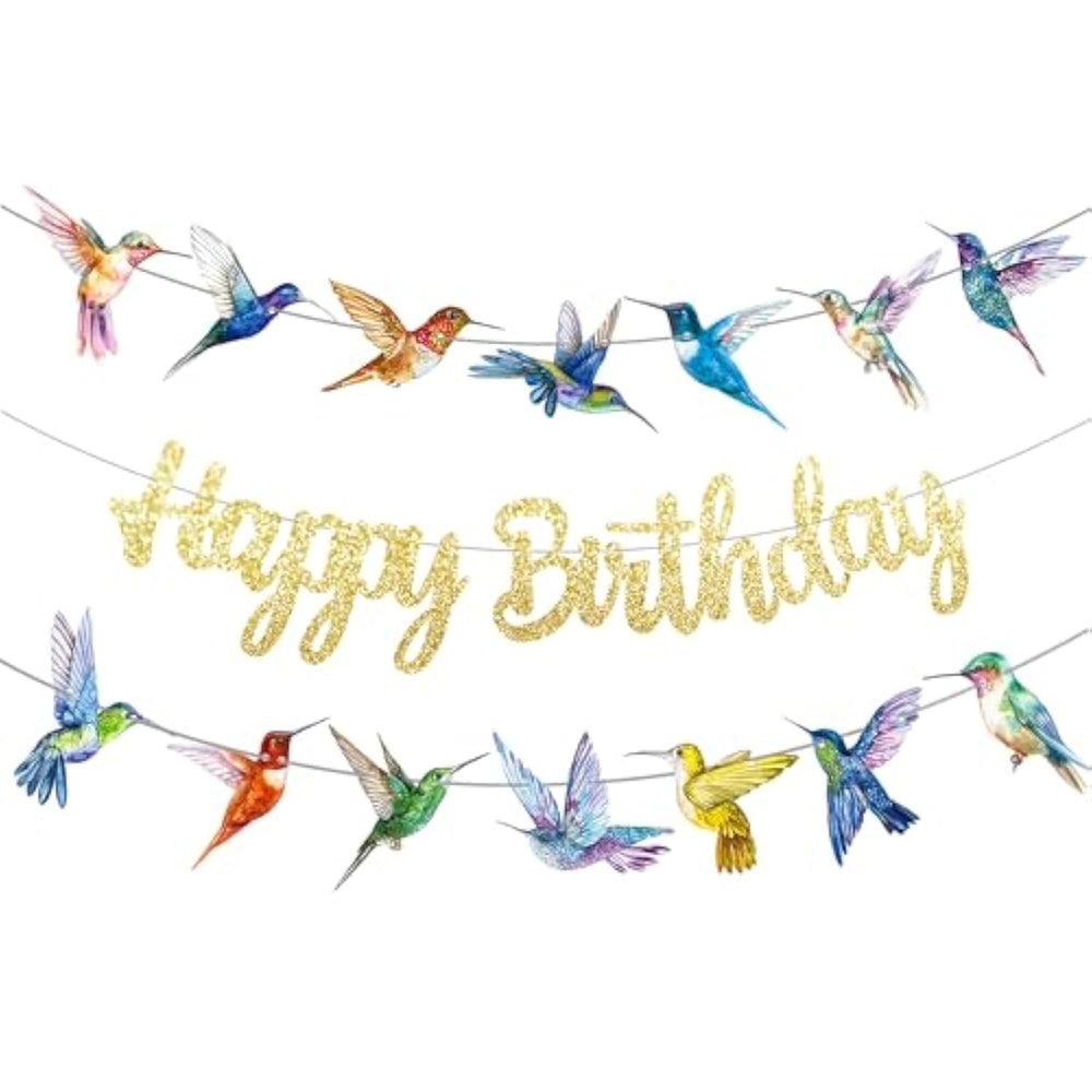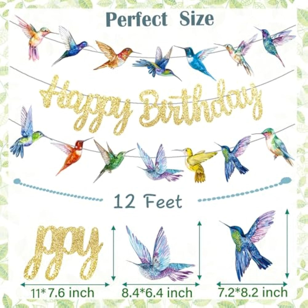 | ???3Pcs Hummingbird Birthday Banner?Hummingbird Birthday Party Decorations Include Three Hummingbird Banners, One Is A Gold Glitter Happy Birthday Slogan Banner The Others Are The Banners That Have Hummingbird Patterns In A Variety Of Colors. | | ???Hummingbird Birthday Party Decorations?This Hummingbird Party Supplies Has Finished Stringing Before Selling, No Assembly Required For Party Setup. Let You Leave More Energy To Spend With Your Family As Well As Friends And Enjoy This Hummingbird Birthday Party Full Of Blessings. | | ???Adorable Hummingbird Party Supplies?Beautifully Matched Not Only For Hummingbird Birthday Party, But Also For Bird Themed Birthday, Animal Themed Party, Nature Party, Tropical Bird Baby Shower And So On, Enough To Grab The Attention Of Your Guests. | | ???Lifelike Flying Bird Party Banner?Your Friends Will Be Touched By The Highly Recognizable Hummingbird Cardboard Cutout Printed On Both Sides. Hang It Up As If Hummingbird After Hummingbird Is Flying Freely Above Your Head, So You Can Enjoy The Fun That Nature Brings To You. | | ???Tropical Bird Birthday Decoration?Whether You Hang It On The Wall Of An Indoor Room Or On A Tree Branch Outside, It Can Be Hung Stably And Not Easy To Fall Off. It Is Also Perfect As A Backdrop For Party Photos. | |