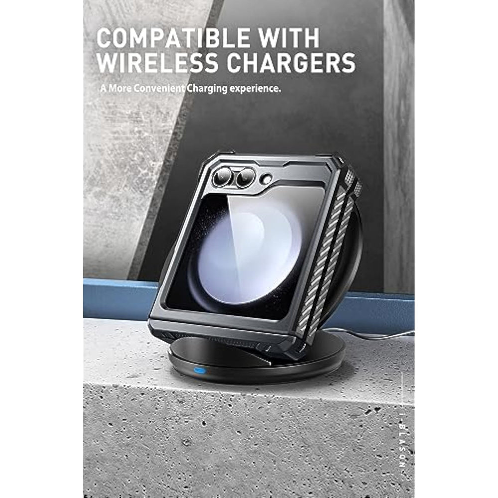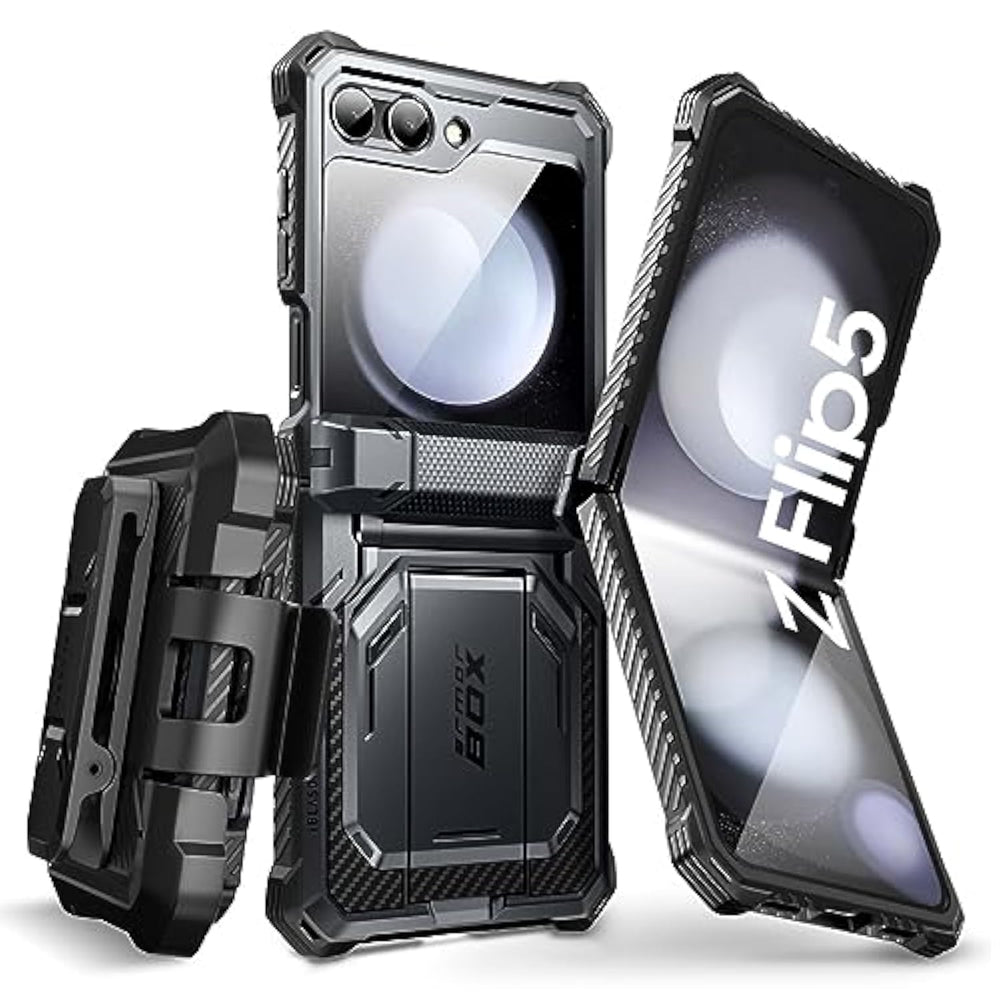 | ?Compatibility?Compatible with Samsung Galaxy Z Flip 5 5G (2023 Release) Only. | | ?Drop Protection?Made with a hard, polycarbonate exterior and flexible, shock-absorbing TPU core safeguards your samsung galaxy z flip 5 from drops and falls. | | ?Hinge Protection?Elevated bezels keep your touchscreen and camera lens free from damaging surfaces, While hinge provides extra protection without affecting the free folding of the phone. | | ?Come with Belt Clip?Hard back case clips into a side mount detachable belt clip swivel holster for carrying convenience during work, travel or play. | | ?Perfect Fit?Precise cut and design allow easy access to all ports, sensors, speakers, cameras and all samsung galaxy z flip 5 features. | |