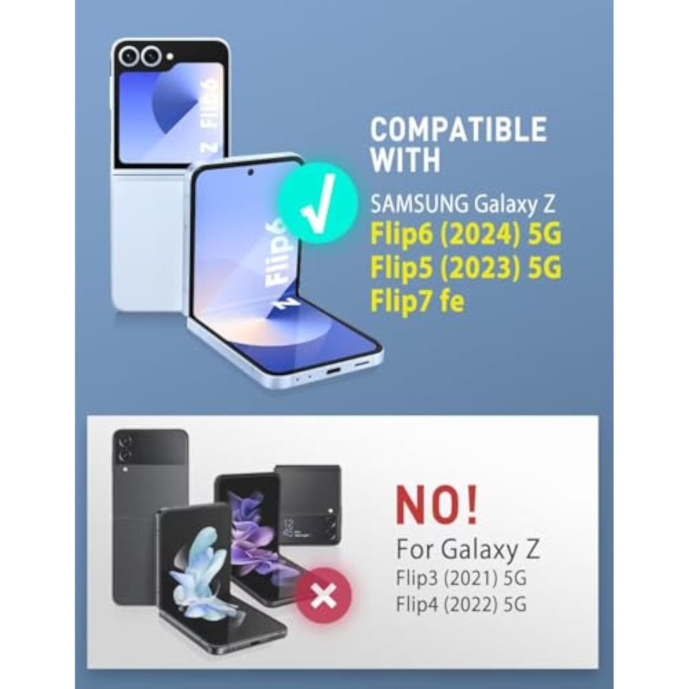 | ?Compatibility?Compatible with Samsung Galaxy Z Flip 7 FE Z Flip 6 Z Flip 5 | | ?Hinge Protection?The hinge protection design of the Z Flip case provides extra safety for your phone without compromising its smooth folding capabilities. | | ?Come with Belt Clip?Hard back case clips into a side mount detachable belt clip swivel holster for carrying convenience during work, travel or play. | | ?Drop Protection?Flexible TPU and polycarbonate materials provide 360° protection, CNET-certified protection from dust, dirt, drops, and falls. Elevated bezels keep your touchscreen and camera lens free from damaging surfaces. | | ?Precise Fit?Precise cut and design allow easy access to all ports, sensors, speakers, cameras and all features. | |