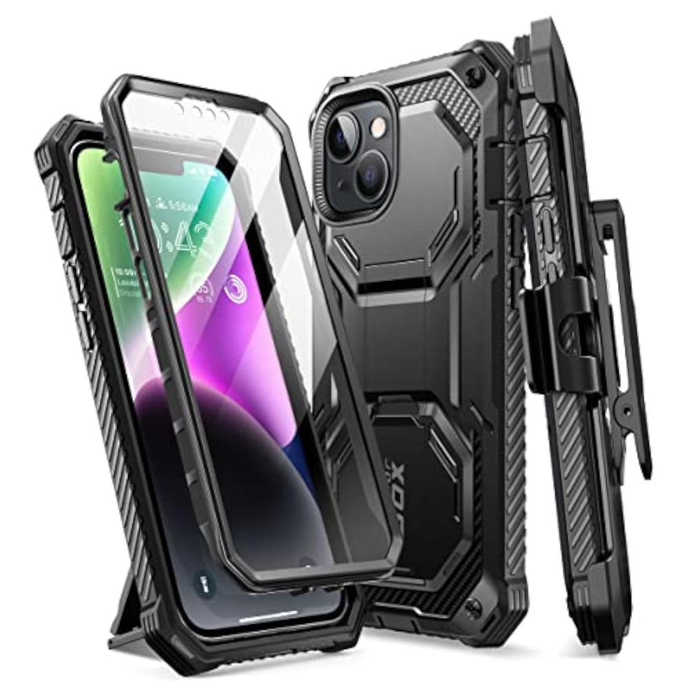 | Compatible with iPhone 14 6.1"(2022)/iPhone 13 6.1" (2021) Only. | | iPhone 14 case/iPhone 13 Case with built-in screen protector prevent your phone from scratches and cracks, and hard back case with built-in kickstand allows for hands-free multi-angle viewing. | | Hard back case clips into a side mount detachable belt clip swivel holster for carrying convenience during work, travel or play. | | Elevated bezels on iPhone 14 case/iPhone 13 case keep your touchscreen and camera lens free from damaging surfaces. | | Precise cut and design allow easy access to all ports, sensors, speakers, cameras and all iPhone 14/iPhone 13 features. | |