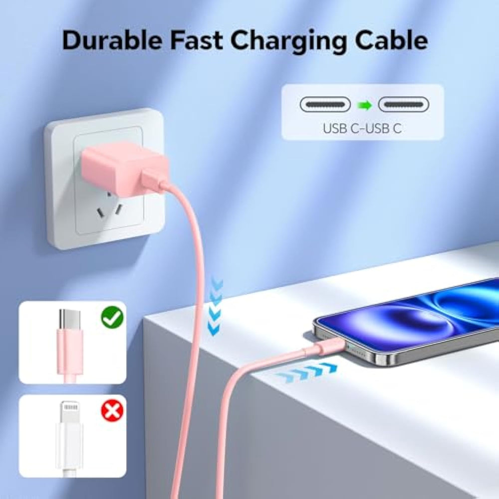 | Usb C Charger Fast Charging: Usb C Wall Charger Suitable For I Phone 15 16, Samsumg, And Android Phones, The Usb Charger Cable Can Provide Maximum Output Power Of 20W. Phone Chargers I Phone Can Quickly Charge The I Phone 15 Pro By More Than 50% In 30 Minutes, Saving You More Than 1.5 Hours. | | 10Ft Usb Charger Cable: The 10Ft I Phone Charger Cord Enhances Charging Flexibility And Is Tailored To Individuals Who Need To Expand Their Range Of Motion Without Sacrificing Charging Capabilities. The 10-Foot Length Strikes A Balance Between Reach And Efficiency, And Also Enjoys 480 Mbps Data Transfer Speed And Maximum 20W Output Power. | | Compatible With Multiple Devices: The Usb C Charger Is Compatible With Most Usb C Devices. For Example: I Phone 15/16/16 Plus/16 Pro/16 Pro/16 Pro Max/15/15 Plus/15 Pro/15 Pro/15 Pro Max, Samssung Galaxy Sys8/S9/S10. | | Compatible With Multiple Devices: The Usb C Cable Is Compatible With Most Usb C Devices. For Example: I Phone 15/16/16 Plus/16 Pro/16 Pro/16 Pro Max/15/15 Plus/15 Pro/15 Pro/15 Pro Max, Samssung Galaxy Sys8/S9/S10. | | Brand: You Will Receive A Set Of 3-Piece 20W Usb C Charging Block And 10Ft Usb Charger Cable, Which Are Pink, Blue And Green. Please Feel Free To