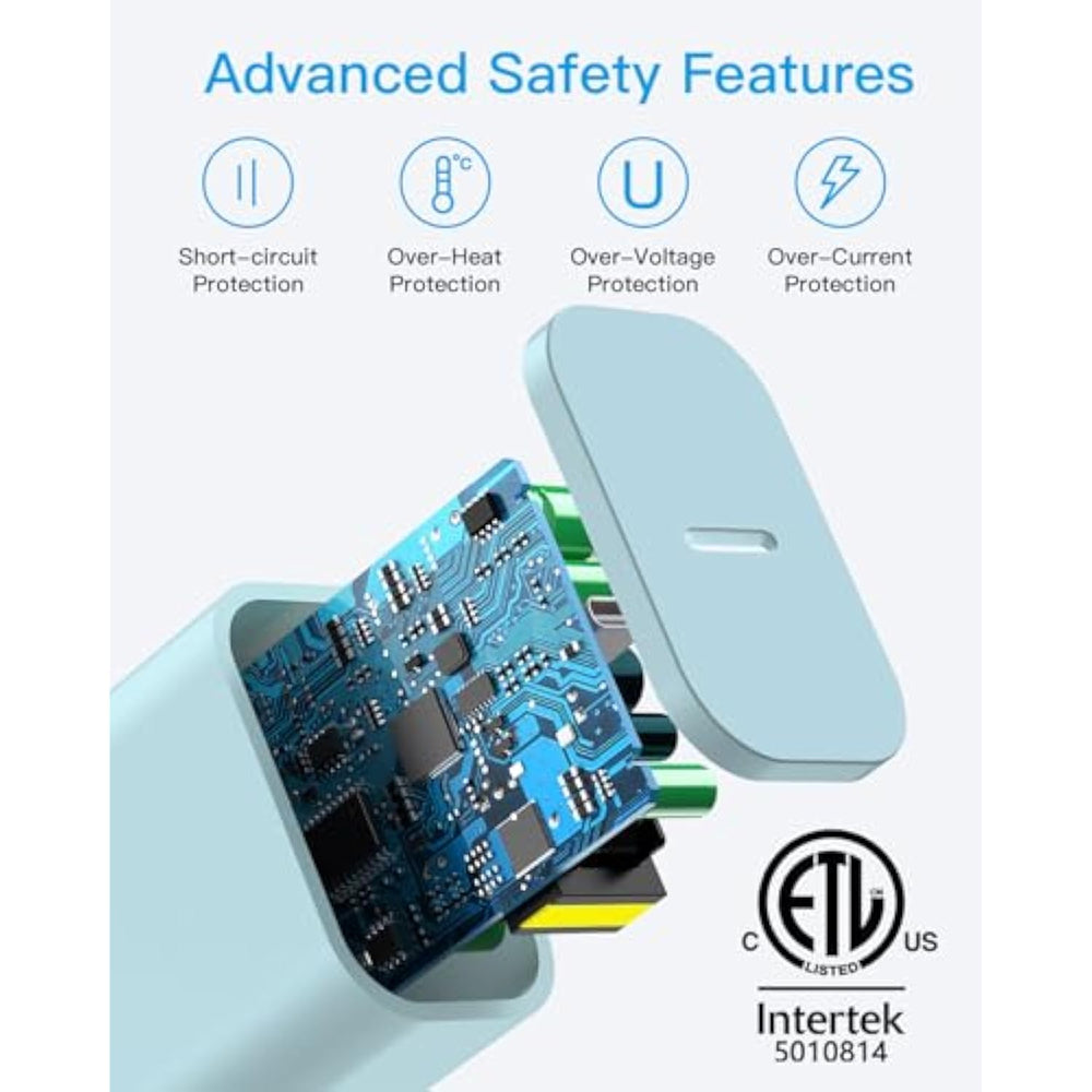| For 20W Phone Fast Charger : 20W Usb C Wall Charger Max Output Of 20W Power, With The Intelligent Chip Inside, Pre-Eminent Copper Core Wire Maximizes Signal Quality And Ensures Stable Data Sync, Charge Your Device Up To 3X Faster Than Original 5W Charger. Unrivaled Speed Shortens Your Charging Time And Improves Your Life. | | Safe And Reliable:While Purchg A 20W Usb C Fast Charger 6 Ft You May Have Dilemma-Whether To Choose 20W Charger Or 3Rd Party 20W Charger. Most Of The People Think That, 3Rd Party Chargers May Not Be Safe And May Affect The Battery Life In The Long Terms.However, It Is Not Entirely True. 20W 10 Ft Phone Charger Offers Multiple Safeguards Automati