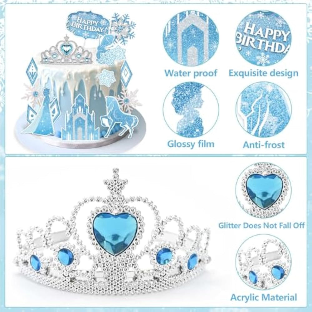 | ??Unique And Fun Design: The Birthday Cake Topper Set Includes A "Happy Birthday" Cake Topper And A Crown And Snowflake Decoration To Create A Beautiful Magical Castle Snowflake World. This Cake Topper Decoration Adds Humour And Uniqueness To Your Birthday Party. | | ??Package Includes: You Will Receive 16 Pieces Of Different Types Of Cake Decorations With 1* "Happy Birthday" Cake Topper, 1* Sparkling Crown, 1* Acrylic Castle, 3* Glitter Snowflake, 10* Different Types Of Princess Cartoon Cake Decorations. | | ??Clear And Double Sided Printing?The Magical Motifs On The Cupcake Toppers Are Clearly And Vividly Printed On Both Sides, Allowing The Cupcake Toppers To Be Viewed From Any Angle. The Crown Decoration Can Put On The Cake Or Wear On Head, Your Girl Will Love It.16 Pcs Set Cupcake Toppers Decorations Are Perfect For Kids Birthday Parties. | | ??Food Safe Materials: The Birthday Cupcake Toppers Are Made Of High Quality Food Grade Cardboard, With Thick Glossy Film, Water Resistant, Anti-Cream, Food Safe, You Can Decorate Your Cake Without Worrying About It Getting Dirty And Reusable. | | ??Use For Multiple Scenes: Glitter Happy Birthday Cake Toppers For Girls And Boys Can Be Used For Christmas Parties, Halloween, Dinners, Baby Showers, Birthday Parties And Festivals. Children And Adults Will Love These Cute And Cool Party Decorations. | |
