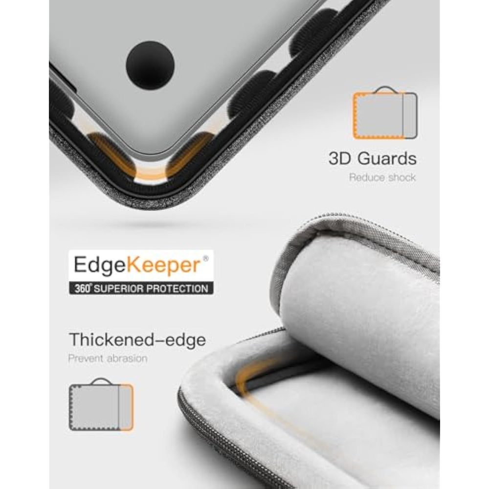 | Compatibility: The laptop sleeve compatible with 14-inch MacBook Pro/Max M4/M3/M2/M1 A3112/A2918 A2992 A2779 A2442 2023-2021, 13.5 inch Surface Laptop 6/5, Surface Book 3, 13.3 inch MacBook Air A1466 A1369, 13 inch MacBook Pro Retina A1502 A1425; 13 inch Macbook Pro/Air M2/M1 2010-2022. Internal dimensions 32.5 x 23 x 2 cm (12.8 x 9 x 0.8 in), external dimensions 35 x 25.5 x 4 cm (13.8 x 10 x 1.6 in). | | 360° Enhanced Protection: The interior thick protective strip can prevent the zipper from scratching the laptop. Plus the elastic shockproof cotton on the bottom and sides, the bag provides all-round protection. The soft flannel lining makes it scratch-resistant, dust-proof and shock-proof. | | Elastic Handle: The PU handle allows the bag to switch between a briefcase and a laptop sleeve. With the handle hidden, it is a laptop sleeve and you can put it into a backpack. With the handle up, it turns into a laptop briefcase. Perfect for anyone looking for a laptop bag, laptop sleeve, laptop case. | | Waterproof: The exterior is made of splashproof 600D polyester fabric to prevent accidental splashing on your device. | | Additional Storage: Besides the main compartment, there is a large front zipper pocket to store the power adapter, cables, mouse and other accessories conveniently. | |