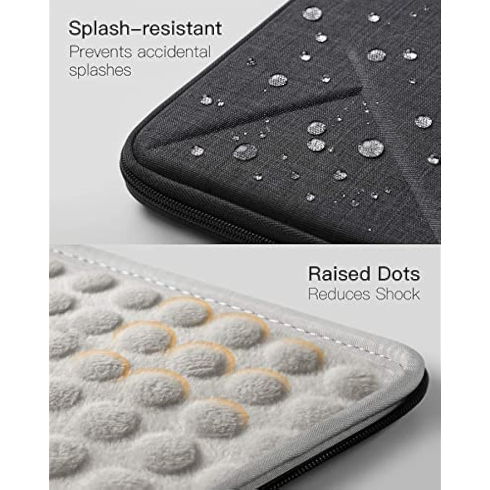 | Compatibility: This laptop bag case compatible with 13-inch MacBook Air M4 2025, M3/A3113, M2/A2681, M1/A2337, A2179, A1932 2024-2018, 13-inch MacBook Pro M2/A2686, M1/A2338, A2251, A2289, A2159, A1989, A1706, A1708 2024-2016; Also compatible with 13-inch iPad Pro (M4)/ 13-inch iPad Air (M2) 2024/ 12.9-inch iPad Pro 6th/5th/4th/3rd Gen. (2022-2018) all WITHOUT Magic Keyboard. Internal dimensions 30.5 × 21.5 × 2 cm (12 × 8.46 × 0.8 inch). | | Thoughtful Details: Premium dual zippers are adopted for the main opening, smooth and durable. The small accessory bag can hold your mouse, chargers, or headphones. A piece of elastic cloth inside keeps your laptop from rocking. | | Three-Layer Protection: The 13 inch macbook air case sleeve adopts EVA hard shell in the middle to resist pressure. Elastic interior lining with raised dots can reduce shock and prevent accidental scratches. Water-resistant polyester surface can repel accidental water splashes. | | Classic Design: Inateck has always pursued a minimalist design concept, and this 13 inch shockproof laptop case bag is no exception. Simple geometric lines compliment all gray color, simple yet sleek in style. A great companion for commuting, school, offices, and business trips. | | Easy-to-Carry: You will get more friction in your hand when holding this laptop sleeve than holding a common EVA bag whose surface is smooth. Accordingly this laptop sleeve is not easy to slip off from your hands. | |