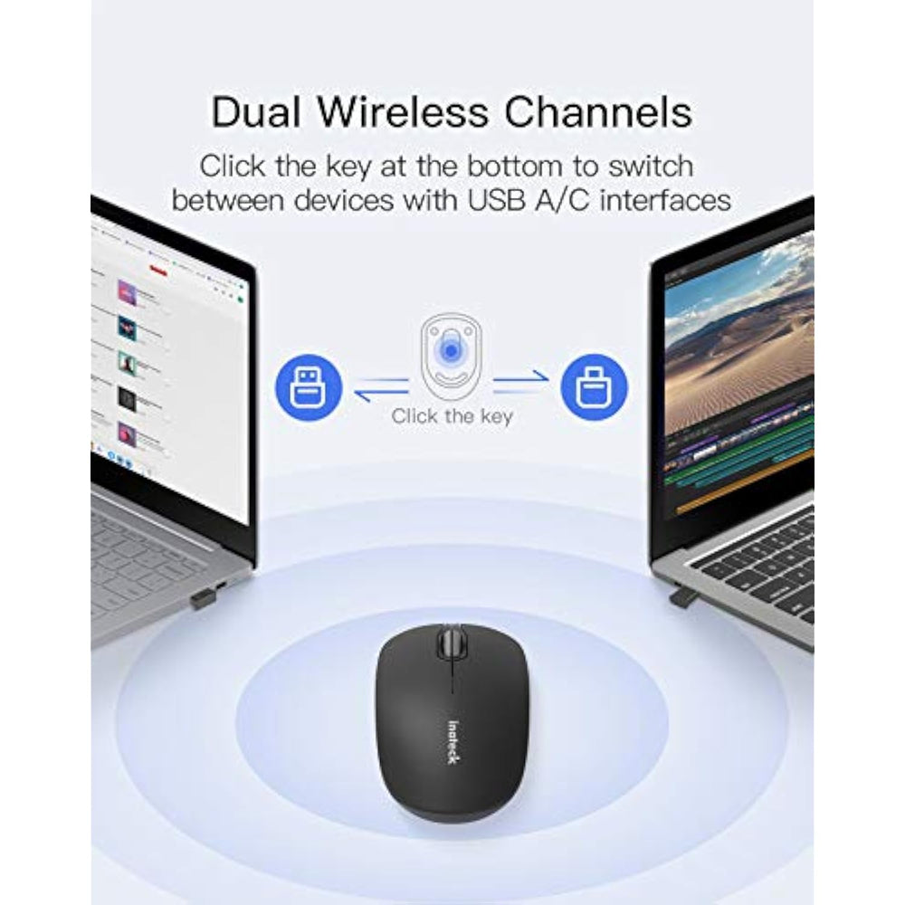 | USB A/C Receivers:The mouse comes with both USB-A and USB-C wireless adapters.?The USB A/USB C receiver is placed in the slot at the bottom of the mouse, which is convenient for you to store and avoid loss; | | Highly Precise: The DPI of the mouse reaches 1500, which ensures smooth control, as well as precise navigation. A great companion for business, study, and entertainment. | | Super Silent: The left and right buttons are silent to click, creating a quiet and comfortable environment to help you better focus on office work and study. | | Ergonomic Design: The symmetric curve design makes the mouse adapt to both left and right hands. The ergonomic smooth surface curve fits your palm perfectly. | | Portable: The mouse is lightweight and compact. It satisfies your needs for business trips, work, and study. | |