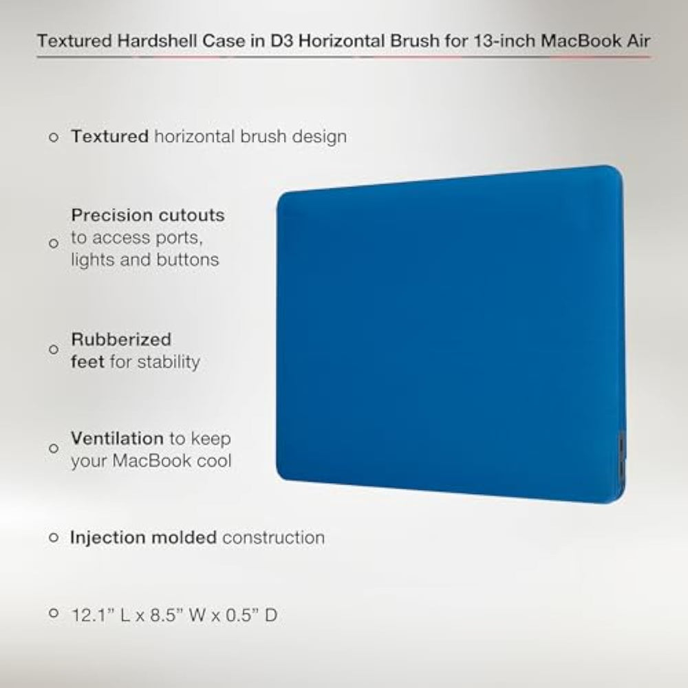 | A New Era of Protection - Experience the perfect blend of style and function with the Incase Harshell Laptop Cover and top-tier MacBook Air 13 inch case. Its distinctive Horizontal Brush design not only adds a touch of class but also ensures secure, form-fitting protection of your apple computer. | | Ultimate Performance - This MacBook Air Case is equipped with rubberized feet for enhanced stability and ventilation to keep your computer cool during long uses. Despite its robust protection, this hard shell case maintains a lightweight design for effortless portability. | | Superior Protection - The seamless, tailored fit of our MacBook case design is crafted from durable materials to shield your computer from scratches and dents while on the go. Precision cutouts for access to ports, lights and buttons keeps your laptop protected without sacrificing use. | | Responsibly Designed Fully Recyclable - Unlike other hardshell laptop covers that are commonly made with ABS plastic, ours are made with premium Bayer Makrolon polycarbonate. This durable material uses low emissions tactics in its creation, resulting in a fully recyclable and protective hard case. | | Compatible with MacBook Air 13 inch - A2337, A2179, A1932. Dimensions: 12 x 8.6 x 1 inches. | |