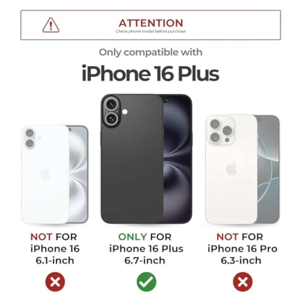 Compatibility: This rugged case is designed specifically for iPhone 16 Plus, featuring precise cutouts for easy access to all buttons and ports. Ensure you verify your phone model before purchasing.