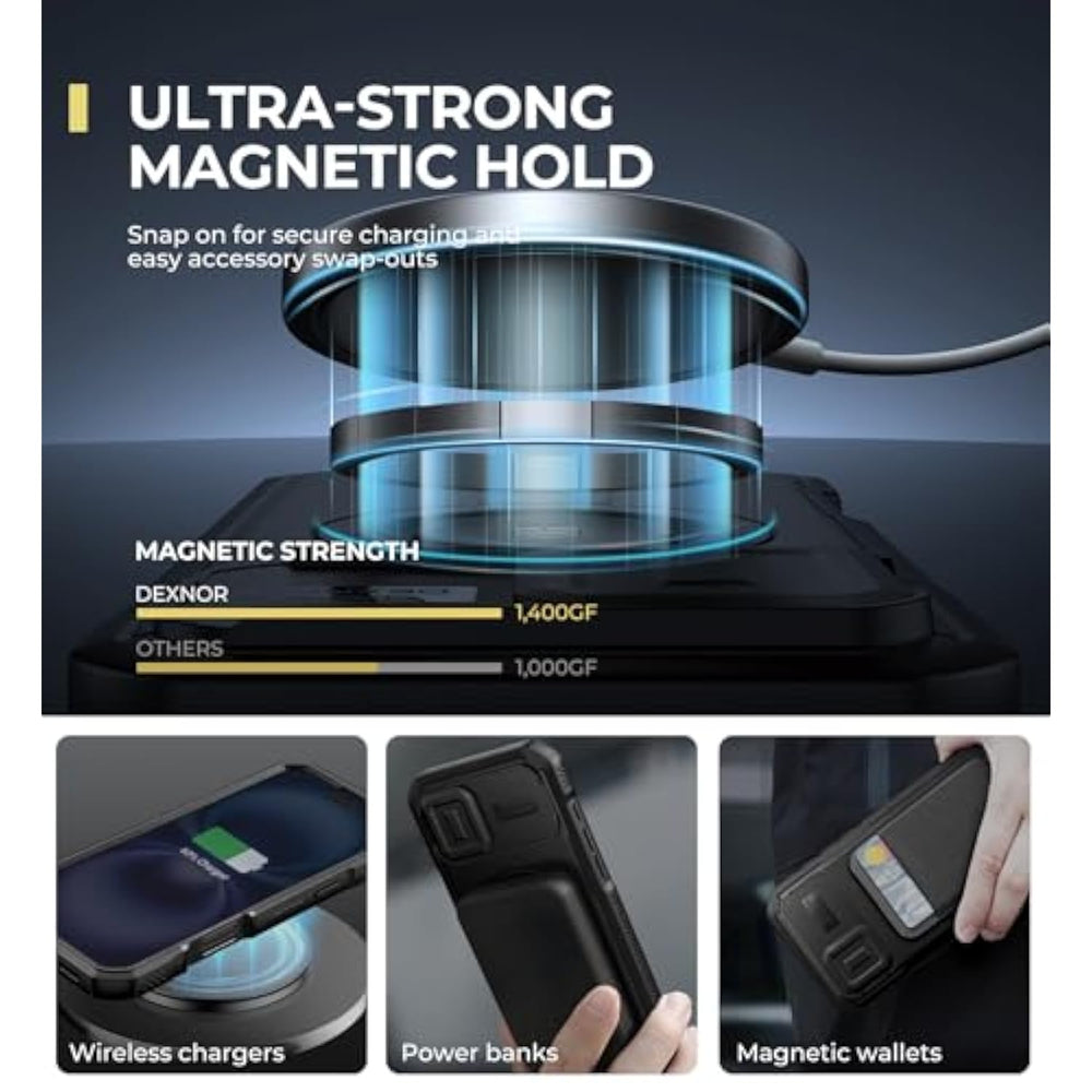 Mighty MagSafe Power: With a magnetic strength of up to 1,400g, this tough case securely holds your phone to MagSafe accessories like wireless chargers and car mounts, ensuring your phone stays in place and protected.