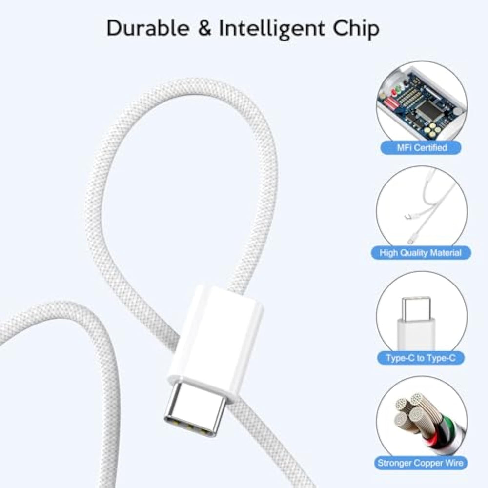 | Safe Reliable:Our Fast Charging Charger Block Wall Charger Plug Prevents Overheating, Overcharging, And Short Circuits,Multiple Protections Can Give You A Full Sense Of Security During You Charge For Your Devices Every Time.Experience Worry-Free Charging With Our Charger, Where Safety Is Always The Top Priority. | | 20W High-Speed Charging:The 20W Charger Adapter Delivers 3X Faster Charging Than Original 5W Adapters, So You Don'T Have To Spend Too Much Time Charging, Saving You A Lot Of Time.Say Goodbye To Long Charging Waits And Hello To More Time For The Things That Matter Most. | | Universal Compatibility:Our Type C Chargers Work For Iphone 17/Iphone17 Pro/Iphone17 Pro Max/Iphone17 Air/Iphone 16/Iphone16 Pro/Iphone16 Pro Max/Iphone 16E/Iphone 15/Iphone15 Pro/Iphone15 Pro Max/Ipad Mini 7/Ipad Mini 6/Ipad Air Series/Ipad Pro Series/Airpods Pro 2/Airpods 4. | | Usb C To Usb C Braided Cord:Our Usb C To Usb C Data Cable Features A Durable Braided Design. Unlike Ordinary Cables Prone To Wear And Cracking, This Braided Structure Offers Excellent Abrasion Resistance, Calmly Handling The Constant Tangling, Pulling, And Bending In Your On-The-Go Life. Laboratory-Tested, It Can Withstand Over 20,000 Bending Cycles Without Affecting Performance, Maintaining Stable Power Transmission And High-Speed Data Transfer Even After Long-Term Intensive Use. | | What You Get:3*20W Type C Charger Fast Charging Adapter,3*60W Usb C To Usb C Weaving Cord.If You Have Any Questions, Please Don'T Hesitate