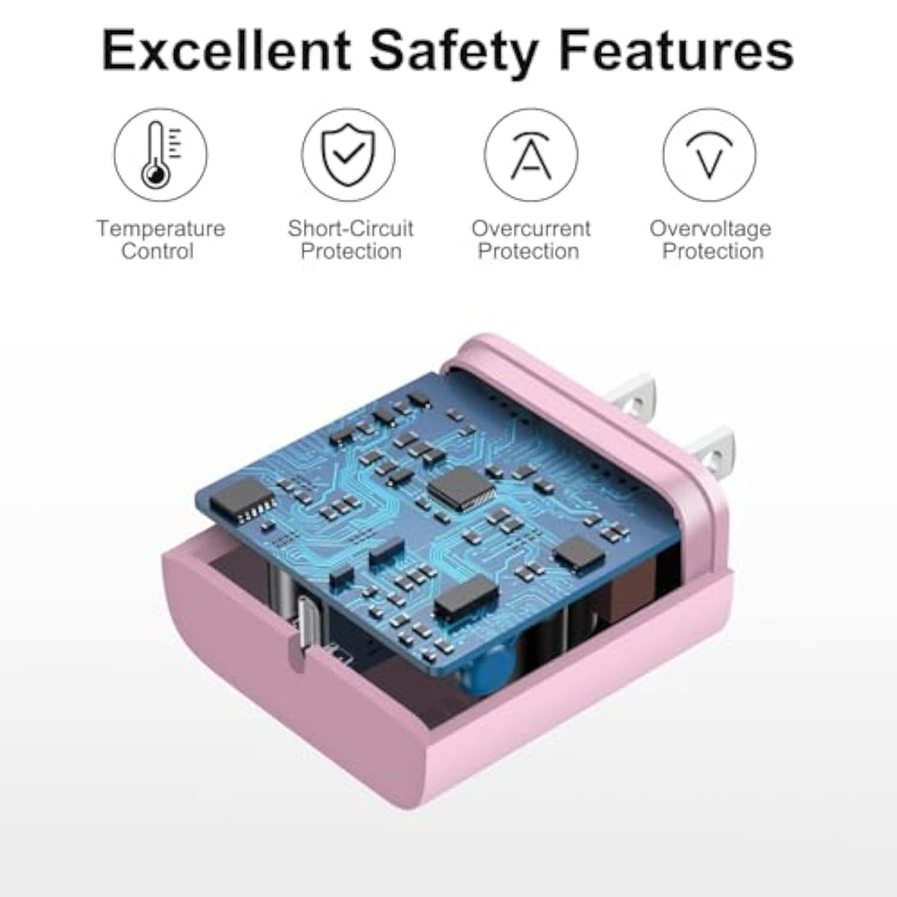 | ?20W Pd 3.0 Fast Charger?20W Pd 3.0 Fast Charger And 10Ft Usb-C To C Cable, Charge Iphone 17 Air 16 15 To 55% In Half An Hour, Which Is 3× Faster Than With An Original 5W Charger | | ?Superior Safety?Iphone Fast Charger Block Equipped With A Wide Range Of Safety Features, Including Temperature Control, Short Circuit Protection And Current Regulation To Protect Your Connected Devices And Maximize The Life Of Your Device | | ?Widely Compatibility?Usb-C Charger Block Offers 20W Fast Charging For Iphone 17/Air/17 Pro/17 Pro Max, Iphone 16/16 Pro/16 Pro Max/16 Plus, Iphone 15/15 Pro/15 Pro Max/15 Plus, 2022/2021/2020/2018 Ipad Pro 12.9/11 Inch 6Th/5Th/4Th/3Rd, Ipad 10Th Generation, Ipad Air 5Th/4Th, Ipad Mini 6 And More Usb-C Device | | ?10Ft Usb C Cable?With The Intelligent Chip Usb-C To C Cable, Friendly Reversible Design, Charging Speed Max Up To 20V/3A, Also Support 480 Mbp/S Fast Data Transmission. 10Ft Length Can Give You More Space To Move While Charging | | ?What You Get?2-Pack 20W Usb-C Wall Charger And 10Ft Type C Cable. We Offer 2-Year And 7 X 24 Hours Friendly