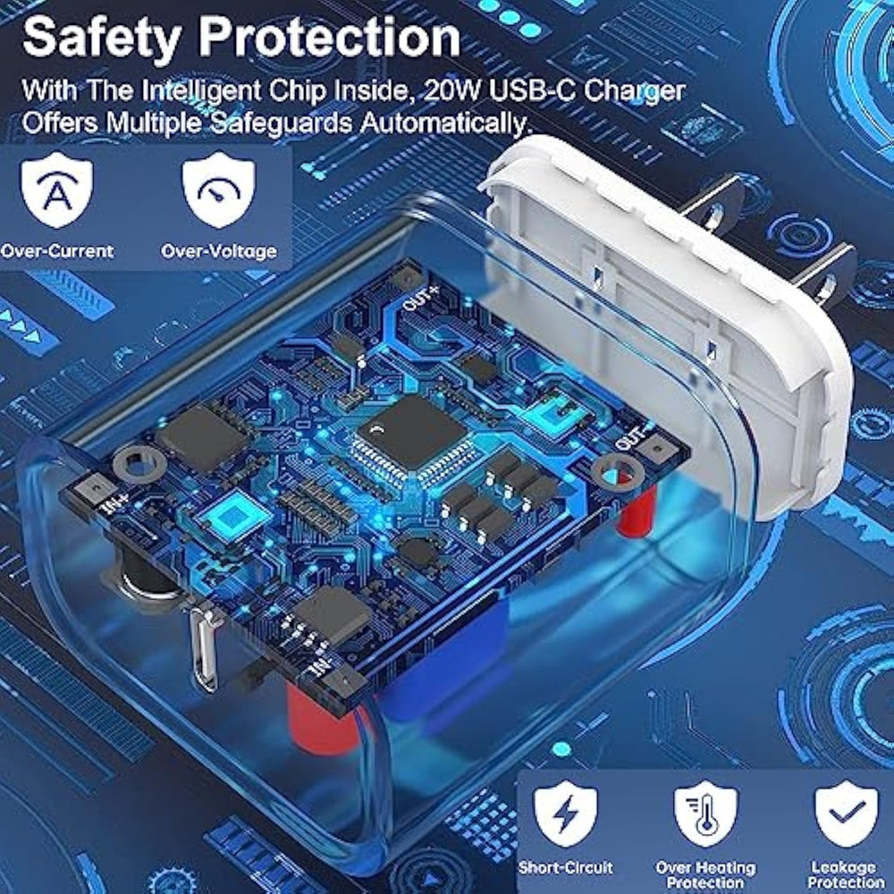 | Iphone Chargers: The Charger Will Provide Fast Charging Iphone 14/14 Pro Max/ Iphone 13/13 Mini/13 Pro/12/12Pro/12 Pro Max/12 Mini/11/11 Pro/11 Pro Max/Xs Max/Xs/X/Xr/8 Plus/8 , Ipad Pro/ Ipad Air/ Ipad, Airpods Pro. Standrad Charging Speed Works With Iphone 7/7 Plus/6S/6S Plus/6/6 Plus/Se/5S/5/5C. | | Iphone 14 13 12 Charger Fast Charging: Iphone Fast Charger Serial Cables Equipped With 20W Pd 3.0 Usb Type C Power Delivery Wall Plug Charger, Pd 3.0 Quick-Charge Usb C Port Provides Max 20W Output Power And 6Ft Fast Charging Cable Parallel Cables Charging Your Iphone 14 Up To 50% In Just 30 Minutes, Saving Over 1.5Hrs For You! | | Safety Efficient Fast Charging: The Power Delivery Wall Charger For Iphone Owns Bulit-In Multi-Protection System, Avoiding From Over-Voltage, Over-Charge, Over-Heat, Etc. The Smart Chip Including In The Mfi Certified Fast Charging Cable Match The Current Required By The Yourdevice Automati