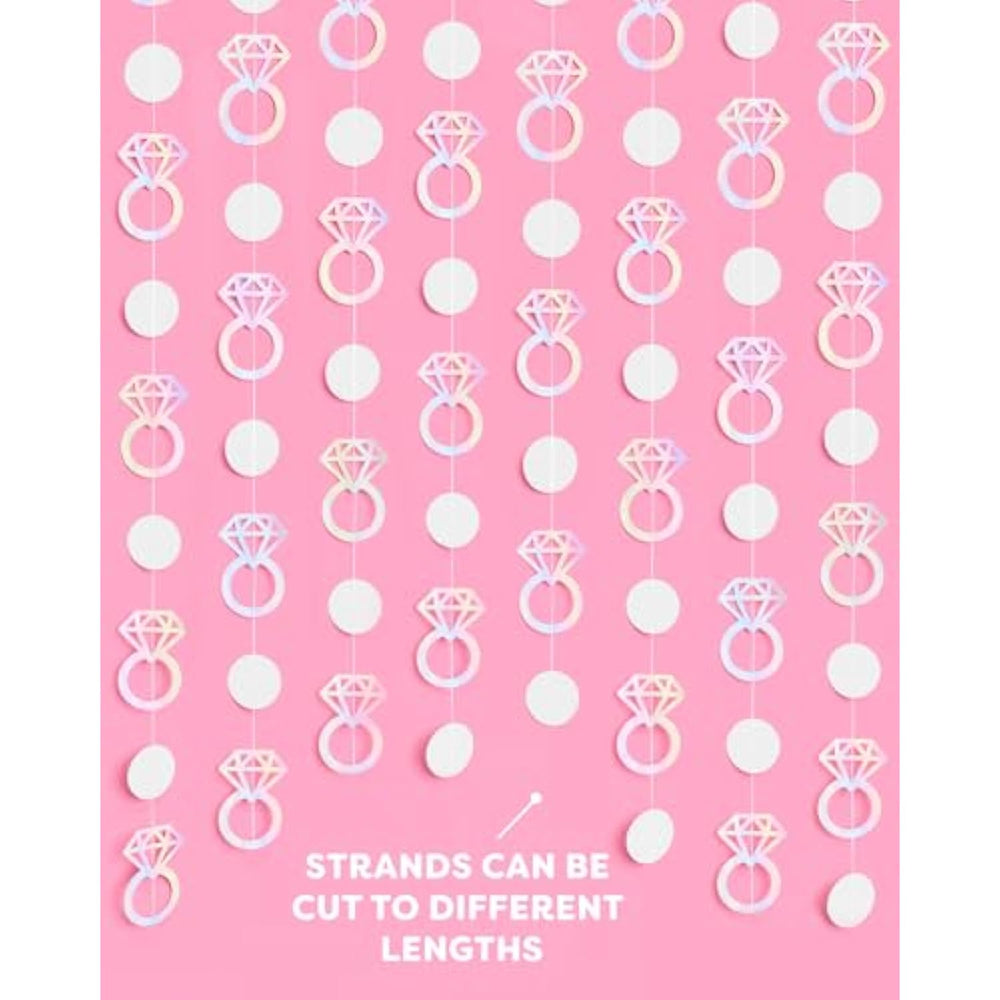 A Party Favorite: Our Iridescent Foil Engagement Ring Garland Is The Party Addition You'Ve Been Looking For + A Hit! | Pretty Details: Each Garland Features An Iridescent Foil Finish In Engagement Ring + Circle Designs - Think Super Fun + Cute! We Include 4Pc, Each 12 Inches Long. | Diamonds For Days: Our Garland Features Iridescent Engagement Rings On A White String Pre-Assembled, With 4 Total. The Finish Feels Very Luxe + The Perfect Compliment To Your Event. | The Perfect Party Accessory: One Size Fits All Whether You'Re Celebrating Your Proposal, Engagement, Bachelorette, Or Bridal Shower... Our Garland Will Look Fab! | Ready To Party: These 4 Garlands Are Pre-Assembled And Ready For Action! | Size: Each Set Comes With 4 Iridescent Foil Garlands That Measure 12 Inches Total! |