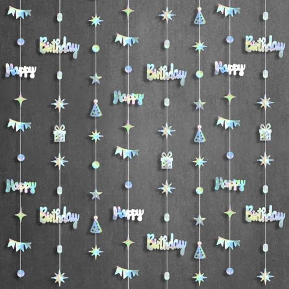 | Paper | | Luxurious Silver Happy Birthday Banner Garland : Want To Create A Magical And Mystical Silver Birthday Decorations The Silver Birthday Banner Garland For Birthday Party Is Perfect For Dreamlike Spring Scenes For Your Home. You Can Create A Beautiful And Elegant Birthday Hanging Decorations With This Happy Birthday Banner. Have A Splendid Silver Birthday Banner Decorations With This Large Happy Birthday Banner For Women And Men. It Is Vertical Hanging Happy Birthday Banner Garland Or Irridescent Happy Birthday Garland, Iridescent Hanging Decoration | | Pre-Strung | Did We Mention No Diy | Ready To Use - The Silver And White Happy Birthday Banner Large Prestrung Is 6.5 Feet Long, Can Be Decorated With Ease As There Is No Diy Required And Can Be Attached And Detached Easily From Your Walls, Ceiling And Backdrops. The Prestrung Happy Birthday Sign Banner Decorations Comes Pre Assembled. It Features The Words Happy Birthday And Elements Like Gift Boxes, Stars And Bunting Garlands. Happy Birthday Decor Banner Star For White Birthday Decorations. | | Elevate Your Experience : Our Main Objective And Concern Is Your Satisfaction So We Personally Made Sure That The Materials We Used In This Silver Happy Birthday Backdrop Banner Are Made With Grade ‘A’ Quality. The Metallic Happy Birthday Decorations Doorway Is More Suitable For Your Birthday Garland Decorations. We Always Ensure That You Will Be Satisfied With This Durable, Re-Usable Happy Birthday Streamers And Incredible Style Of Our Silver Hanging Birthday Wall Decorations.This Is Iridescent Birthday Banner For Silver Decorations For Party | | Sturdy | Reusable : The Happy Birthday Silver Banner Is Made Of Sturdy And Grade A Quality Thick Cardstock Material. Durable Materials Make Birthday Decorations Useful Multiple Times In Different Party Occasions, And Great To Decorate Girls Bedroom, Living Room, Other Place After Party. This Silver Happy Birthday Garland Large For Happy Birthday Hanging Decorations, Happy Birthday Garland Banner, Prestrung Happy Birthday Banner, Happy Birthday Silver Banner For Fairy Decorations For Girls. Happy Birthday Silver Sign For Iridescent Birthday Decorations. | | Create Magical Theme Birthday Party : How Off Your Decorative Skills With This Reusable Silver Birthday Decorations, Birthday Banner Decorations. Silver Birthday Banners For Men String Is Great For Hanging Streamers Birthday Decorations Use This Happy Birthday Banner As Happy Birthday Sign For Backdrop, Iridescent Party Decorations, Silver Birthday Banners, Happy Birthday Hanging Sign, Happy Birthday Door Banner, Happy Birthday Signs For Decorations. Powered By Brnd.Me. | |