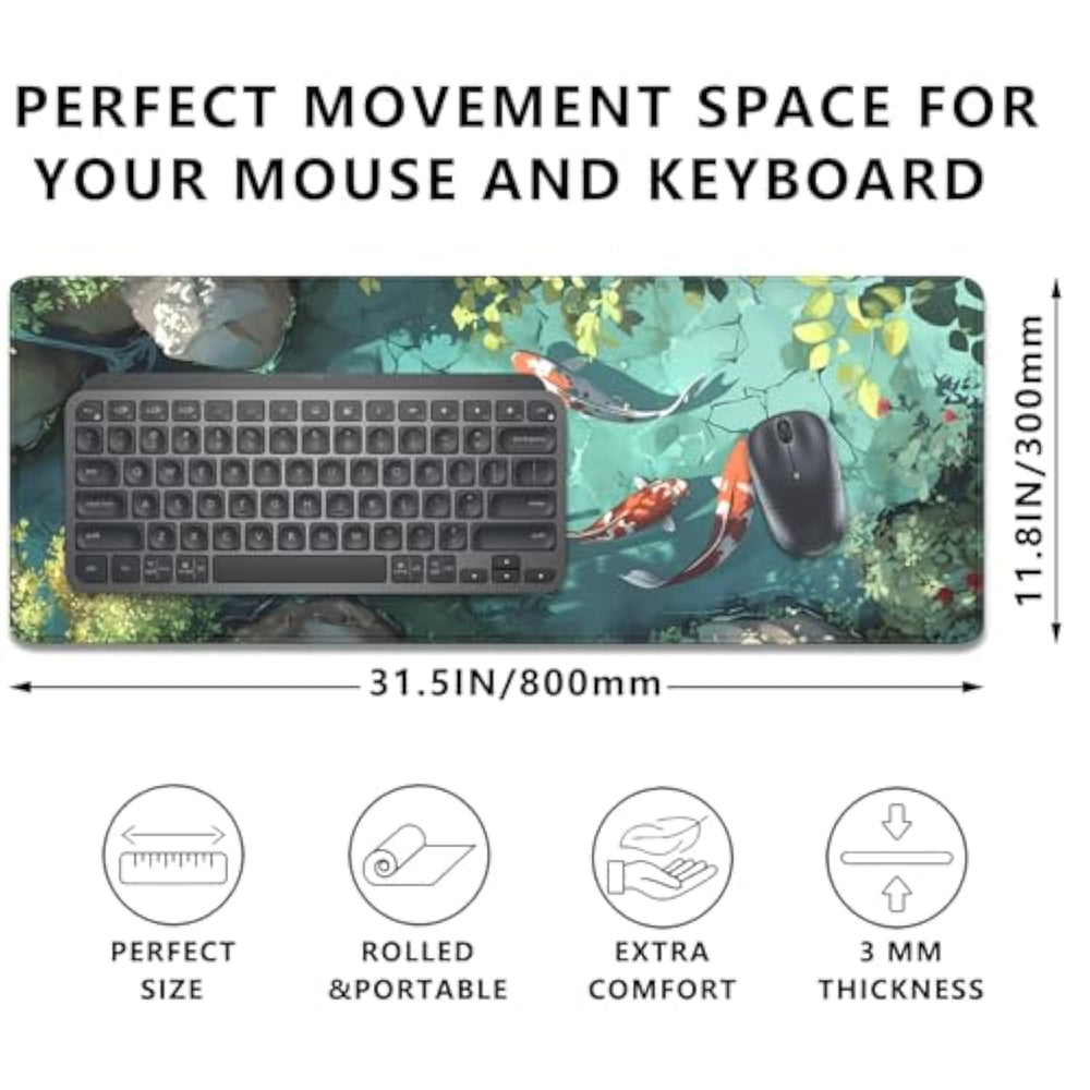 | Elegant And Atmospheric Appearance: We Choose Beautiful And Trendy Patterns And Use Superior Printing Technology To Ensure Vibrant Colors. This Is A Great Desk And Home Table Mat Decoration To Add Some Character To Your Workplace And Home. | | Extended Dimensions: 31.5" X 11.8" X 0.12" (800 Mm X 300 Mm), 3 Mm Thick. It Will Fit Your Desktop Perfectly And Provide The Perfect Space To Move Around, You Can Also Use This Extended Mouse Pad As Office, Gaming, Keyboard Pad, Platform Protector Or Desk Pad, And For All Types Of Mice And More. | | Waterproof Materials Smooth And Durable: Designed With Microfiber Woven Material, The Smooth Surface Will Provide Smooth Mouse Control And Precision. Optimized For Fast Movement, While Maintaining Excellent Speed And Control During Work Or Play, When Liquid Splashes On The Mat, It Forms Droplets And Slides Down Without Delaying Your Work Or Play. Thanks To The Foldable Design, You Can Take This Mouse Pad With You Wherever You Go, Making It Easy To Carry, Even On The Go. | | Non-Slip Natural Rubber Base: This Extended Large Mouse Pad Is Soft And Thick 2 Mm/0.1 Inches, The Base Is Made Of High Quality Natural Rubber, Which Is Harmless To Human Health. There Will Be No Unpleasant Smell. The Mouse Pad Is Designed With Dense Textured Rubber, Which Can Firmly Grasp Your Desktop, Avoid Random Movement, And Provide Stable Operation For Your Mouse/Keyboard. | | Washable Stitched Edges: The Latest Stitching Technology Ensures That The Mouse Pad Will Not Fray Or Deform During Use. The Stitched Frame Ensures That It Won'T Fray Or Come Off Like Other Mouse Pads, Making It Easy To Use. Ordinary Stains Can Be Wiped Off With A Damp Towel. If You Use It For A Long Time, You Can Wash It In Water, Which Is Very Convenient, Durable And Easy To Carry. | |