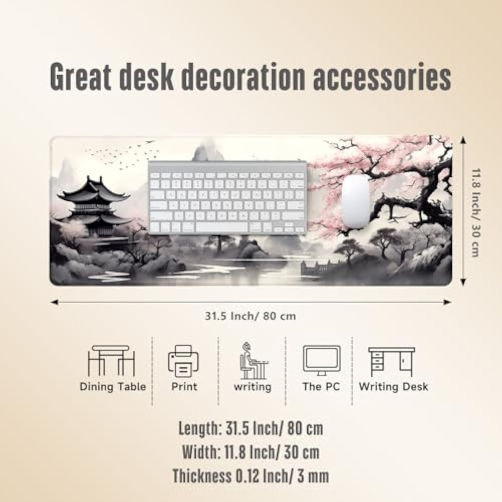 | ? Extended Large Size: The Japanese Mouse Pad Measures 31.5"X11.8" That Covers Most Of The Desk And Offers A Wide Area To Operate Your Laptop, Mouse, Keyboard And Other Office Supplies. Mouse Can Be Moved Freely On This White Gaming Mousepad Without Any Interruption. Never Worry About Running Off The Edge Of The Desk Mat. | | ? Office And Gaming: The Front Side Uses Smooth, Low-Friction Material With High-Thread Count Weave Process. It Ensures Fast Movement While Maintaining Excellent Precision, Consistent And Accurate Mouse Control. Similarly, 3 Mm Thickness Of High-Quality Rubber As The Bottom Cover, To Ensure The Resilience And Quietness That Gently Support You Arms And Wrists, Providing Maximum Comfort For Gaming, Writing, Typing And Browsing. | | ? Long Service Life: Advanced Stitched Edage And Exquisite Printing Technology Prevent The Japanese Mouse Pad Fraying Or Falling Apart And Ensures Longer Lifespan. Generally, Highest Quality, Natural Eco Friendly Rubber And Cloth Will Not Bring Any Awful Smell. You Can Feel Free To Use It At Home On Your Desk, Coffee Table, Side Table, Or Office Desk. | | ? Perfect Desktop Protector: Protect Your Desk While Looking Pretty! Our Xl Mousepad Is Good At Preventing Your Desk From Scratches, Stains, Spills, Heat, Scuffs And Other Accidental Damage. When Liquid Splashes On The Gaming Desk Mat, It Will Form Into Water Drops And Slide Down. It’S Easy To Clean With A Wipe Or Rinse Under Running Water, Fast Drying That Will Not Delay Your Work Or Game. | | ? Great Decoration Accessories Gift: The Gaming Mouse Pad Has A Large And Beautiful Pattern To Add Wonderful Decoration And Practicality To Your Desk. Whether It'S A Job Promotion, Housewarming, Birthday, Anniversary, Thanksgiving, Christmas, New Year, Choosing An Awesome Desk Pad Protector With A Mouse Pad Capabilities As A Gift Is Sure To Be Great! | |