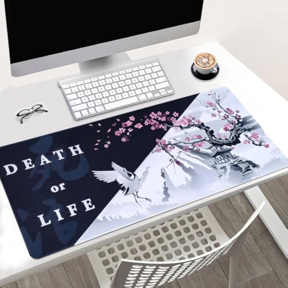 | Expansive Size: Large Desktop Mat Measuring 31.5 X 15.7 Inches Provides Generous Space For Your Keyboard, Mouse, And Other Desktop Accessories | | Artistic Design: Features A Striking Japanese-Inspired Scene With Cherry Blossoms, Crane, And Mountain Temple Divided Between Dark And Light Realms | | Smooth Tracking: Optimized Surface Texture Ensures Precise Mouse Tracking And Fluid Movements For Both Gaming And Everyday Computer Tasks | | Waterproof Surface: Specially Treated Surface Prevents Liquid Damage And Allows For Quick, Easy Cleaning With A Simple Wipe | | Non-Slip Base: Rubberized Bottom Surface Keeps The Mousepad Firmly In Place During Intense Gaming Sessions Or Daily Computer Use | |
