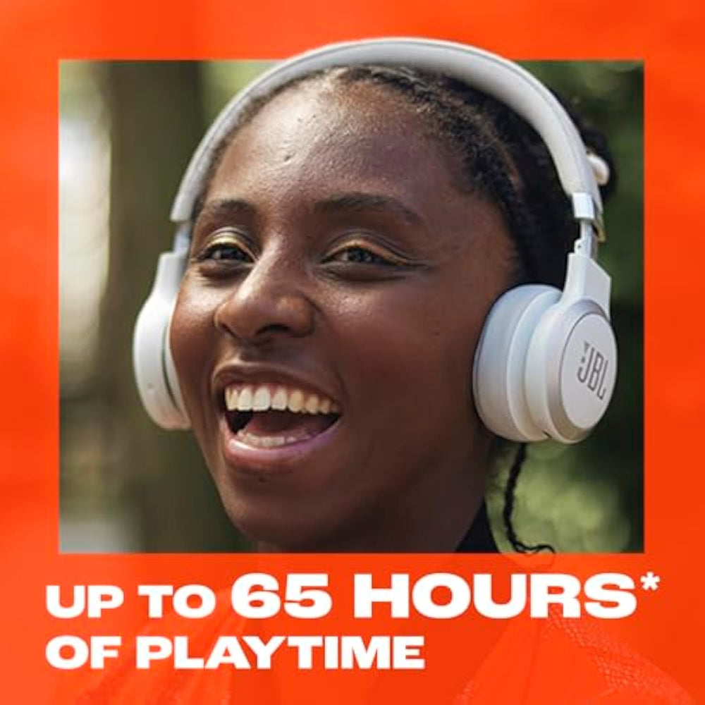 | JBL Signature Sound and surround sound: Along with powerful JBL Signature Sound, the 40mm drivers offer immersive JBL Spatial Sound that turns any stereo content from any device into virtual surround sound. | | Bluetooth 5.3 with LE audio supported*: Wirelessly stream high-quality sound even at lower bit rates with Bluetooth 5.3. Audio Mode gives the best available sound while Video Mode ensures the sound and visuals are always in sync. *Available via OTA update | | True Adaptive Noise Cancelling with Smart Ambient: With four noise-sensing mics, True Adaptive Noise Cancelling means zero distractions whether you’re focusing on studying or getting lost in the music. Or turn on Smart Ambient to hear your surroundings. | | Up to 65 hours* of battery life and speed charge: Listen wirelessly for up to 50 hours and recharge the battery in as little as 2 hours with the convenient Type-C USB cable. In a hurry A quick 5 min charge gives you 4 hours of music. *BT on/ANC off | | Auto play and pause: Take the headphones off, the music stops. Put it back on, the music starts again. It genuinely couldn't be simpler. | |