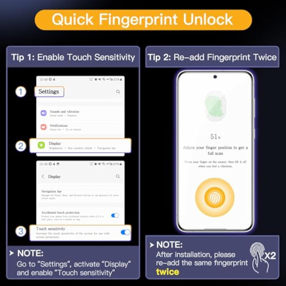 | [Compatibility] Exclusively designed for Samsung Galaxy S24 5G. NOTE: Not for Galaxy S24 Plus/ S24 Ultra. This protective bumper case, together with 2-pack screen protectors and 2-pack camera lens protectors, provides a 360 degree all-around protection for your phone | | [Clear Back Protective] The phone case is made of flexible TPU frame and hard PC back, protecting your phone from drops and scratches. And you can always admire original beauty of your phone through the anti-yellowing back | | [Premium Tempered Glass] Both screen protector and camera lens protector are built with 9H hardness anti-scratch material. Highly responsive and HD clear (NOTE: For better fingerprint unlock, go to device’s Settings to activate the Touch sensitivity and re-add your fingerprint after installing the film) | | [Focus on Details] Raised edges around the screen and camera resist surface scratches. Unique dot design can prevent ugly watermarks from gathering inside the case | | [Precise Cutouts] Perfectly aligned cutouts allow easy access to the speaker, camera, buttons and other features. Compatible with wireless charger | |