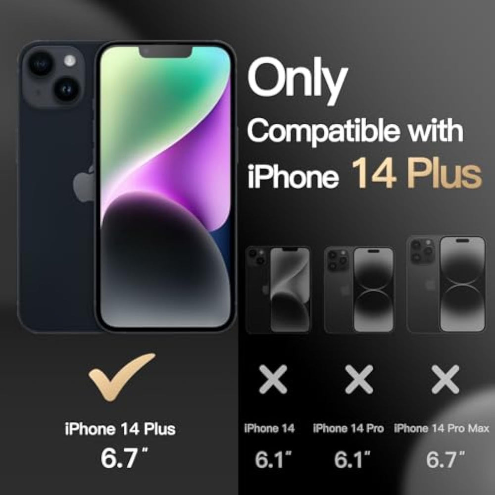 | [Heavy Duty Protection] Exclusively for iPhone 14 Plus 6.7 inch. A dual-layer rugged case with a soft TPU inner shell and a hard PC outer back, provides excellent shock-absorbing and anti-drop protection for your device | | [Easy Magnetic Adsorption] Seamlessly compatible with MagSafe accessories. Built-in strong magnets allow you to enjoy super convenience in making your phone stay powered anytime and anywhere | | [Perfect Fit] Customized cutouts for the speaker, camera and other ports, so you can fully operate all functionality of your phone. Also sensitive covers keep the volume buttons and power button away from daily abrasions | | [Focus on Details] Designed with sufficient raised lips to keep the screen and camera resist surface scratches when being put faced down. In addition, the matte back offers a comfortable grip and perfectly resists fingerprints | | [Lasting Durability] This tough protective case with a heat-dissipation structure not only acts as a defender for your phone, but also features a stylish outline. Just enjoy your time in running, climbing, cycling, skateboarding or jungle trekking | |