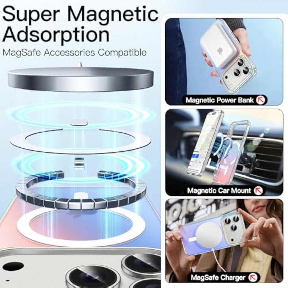 | [Perfectly Fit] Designed for iPhone 17 Pro 6.3 inch. NOTE: Not for iPhone 17 / Air / 17 Pro Max. The perfectly aligned cutouts allow full access to the camera, speaker, buttons and other ports | | [Colorful Look] The iridescent back shows different colors when viewed from different angles, making your phone more attractive and trendy | | [Super Magnetic Adsorption] Attach to the charger magneti