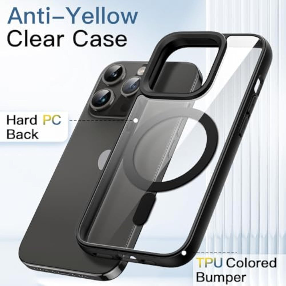 | [Compatibility] NOTE: Not for iPhone 14 / 14 Plus / 14 Pro. Exclusively fit for iPhone 14 Pro Max 6.7-inch. Lightweight and slim design | | [Strong Magnetic Adsorption] The perfectly aligned 38 built-in magnets make wireless charging faster and easier than ever before. Compatible with MagSafe accessories. When it's time to charge, just keep the case on your phone and snap on your charger | | [Trustworthy Quality] Made of flexible solid color TPU frame and durable crystal clear PC back to show off your device's original beauty. Inner tiny dots design avoids ugly watermark against the phone back | | [Extra Protection] Raised bezels offer extra protection for screen and camera. Unique shock-absorption design: 4 corners effectively absorb shocks | | [User-Friendly] Precisely aligned cutouts for the speaker, camera and other ports. Easy access to all features and controls | |