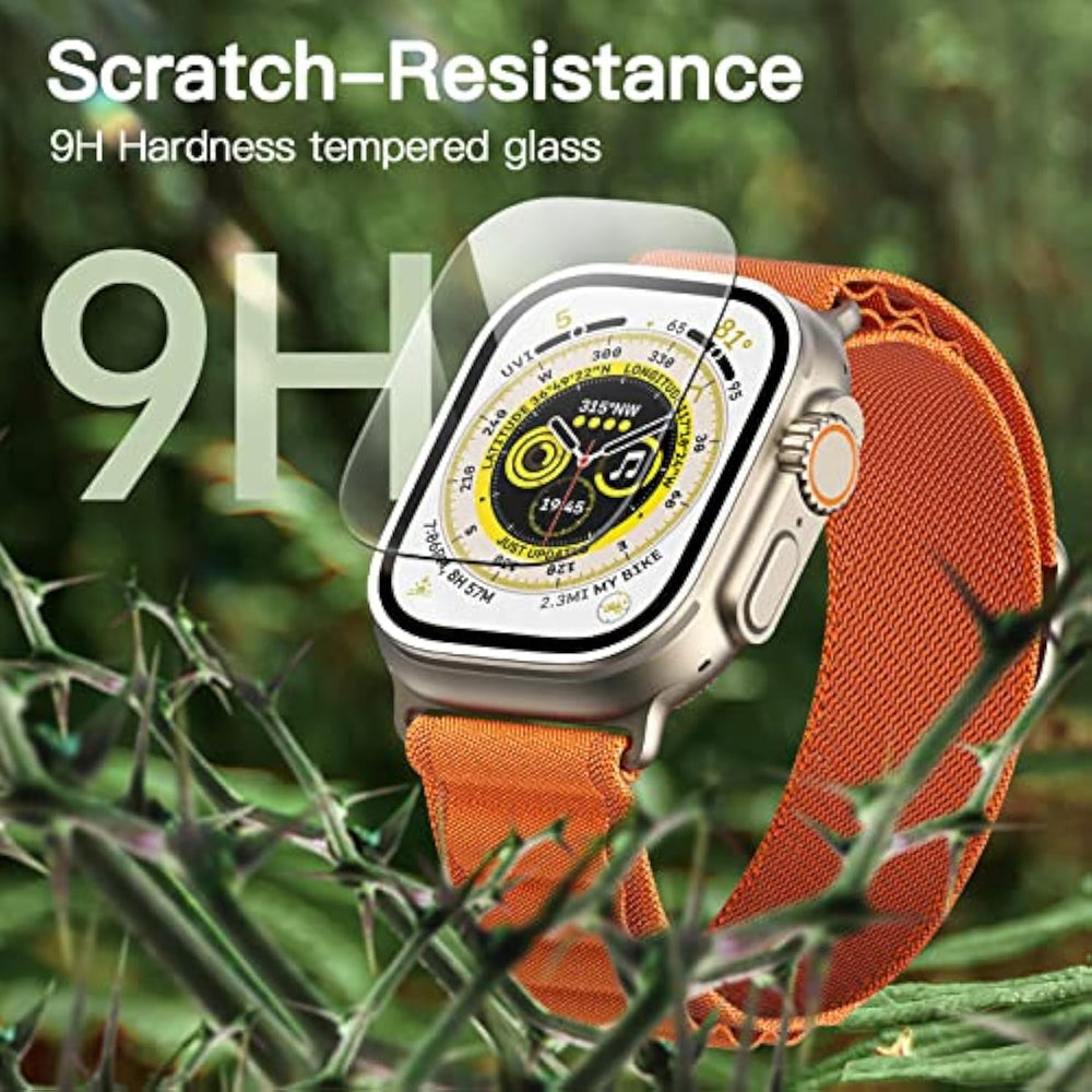 | [Compatibility] Exclusively designed for Apple Watch Ultra 3/2/1 49mm. Do not fit other models. Please double check the model of your watch before purchg | | [Easy Installation] Come with an easy installation frame. Allow perfect alignment and quickly install the screen protector without leaving any air bubbles | | [Anti-Scratch] Built with 9H hardness tempered glass, highly protect your watch screen against scratches, abrasions, shocks and bumps | | [Ultra-Clear Highly Sensitive] 99% Light transmittance. Offer a high transparency screen viewing experience. Moreover, the ultra-thin glass ensures a quick response to every touch and tap | | [Fingerprint-Proof] Effectively reduce fingerprints and oil residue thanks to a hydrophobic and oleophobic coating. Easy to clean and always maintain a clean screen environment | |