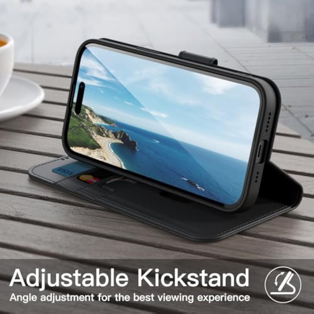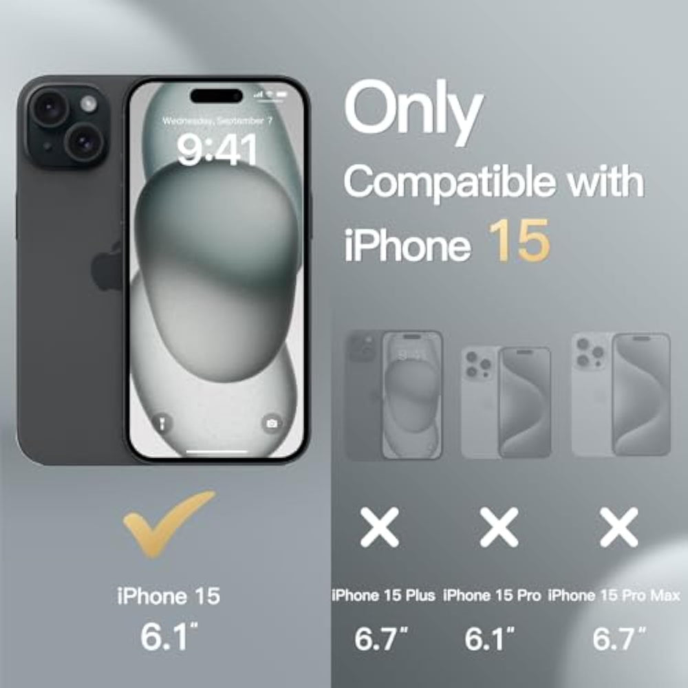 | [All-Around Protection] NOTE: Not for iPhone 15 Plus / 15 Pro / 15 Pro Max. Designed for iPhone 15 6.1-inch. PU leather cover and inner flexible TPU back protect your device from scratches, shocks and bumps. Premium materials ensure a comfortable grip | | [Functional Wallet Design] Built-in three card holders and a long cash slot, helping you store ID card, driving license, credit cards and cash without carrying a purse. Reasonable space between card holders allows easy access to your card | | [Convenient Stand] The adjustable kickstand feature will free your hands in movie-watching with multi-viewing angles, or enjoying FaceTime, reading and so on | | [Keep Security] The stronger magnetic clasp holds your phone and cards in a closed position. No need to worry the cards and money will fall off. Keep your belongings secure | | [User-Friendly] Support wireless charging. Customized cutouts give you full access to speakers, camera and buttons, helping you answer your