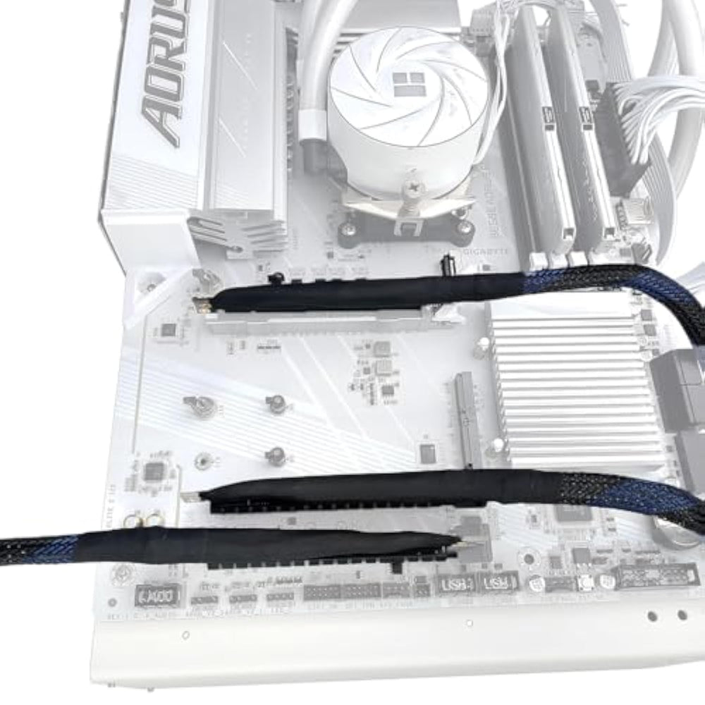 | PCIE 5.0 X16 graphics card extension cable, 64GB/S bidirectional bandwidth, 180 degree. Cannot be used to server motherboards that compatible with PRSNT signals, such as 5090. | | Direction Detail?Left and right indicate the direction of the wire, with the board and slot notch on the left as the positive direction. Mesh and wire indicate braided mesh and silver-plated wire. | | Extension Cable Usage: The PCIE card originally plugged directly into the motherboard, through the extension cable to replace the location for installation. | | 180 degrees left out and left in direction, suitable for graphics card extension installation, flexible placement. | | Widely Application: Support GPU cards, display cards, graphics cards, computing cards, accelerator cards, network cards, sound cards, capture cards, solid state drives, array cards, etc. Backward compatible with PCIE 4.0, PCIE 3.0. | |