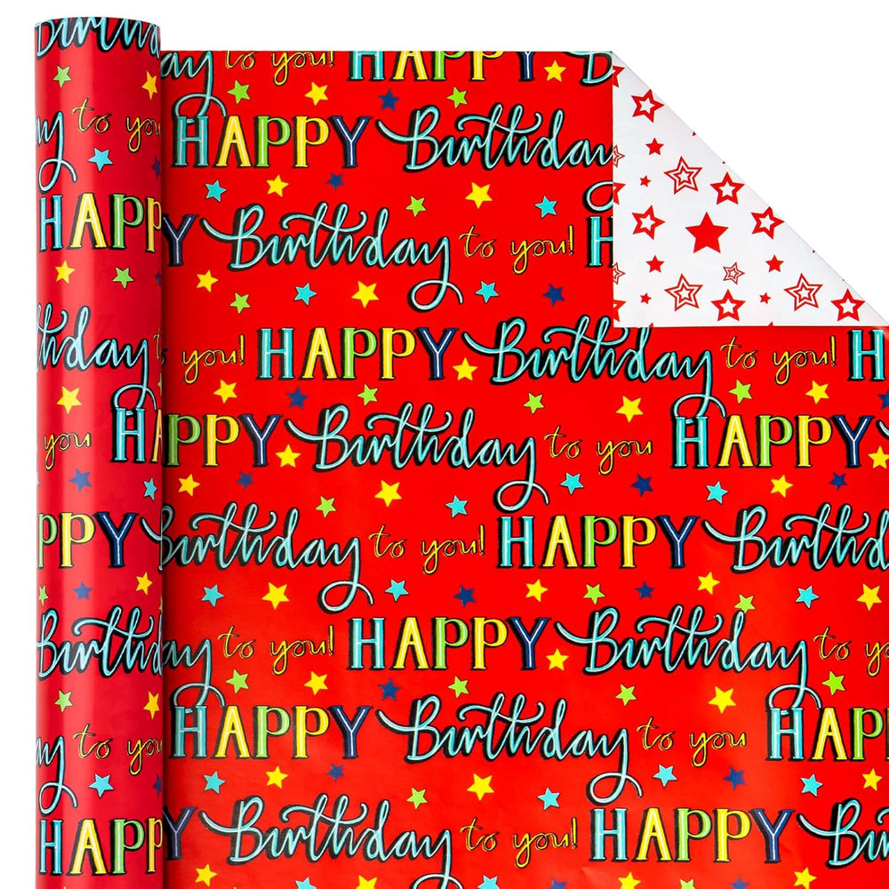| Perfect Size: Jumbo Roll Measures 30 Inches Wide By 100 Feet Reversible: Colorful "Happy Birthday To You" Lettering Printed On One Side, Red Stars Printed On The Reverse, Two Different Designs Make Unique And Varied Gift Presentations Easy Premium Quality: Created With High-Quality Paper Materials, Thick And Not Easily Tear Or Rip, Item Came With Shrink Film To Prevent Wrapping Paper From Scratches And Reduce Dust Use All Occasion: Perfect For Birthday, Baby Shower, Christmas, Wedding, Mothers Day, Holiday, Party Gifts Wrap, It Is Also Great For Craft Project Quality