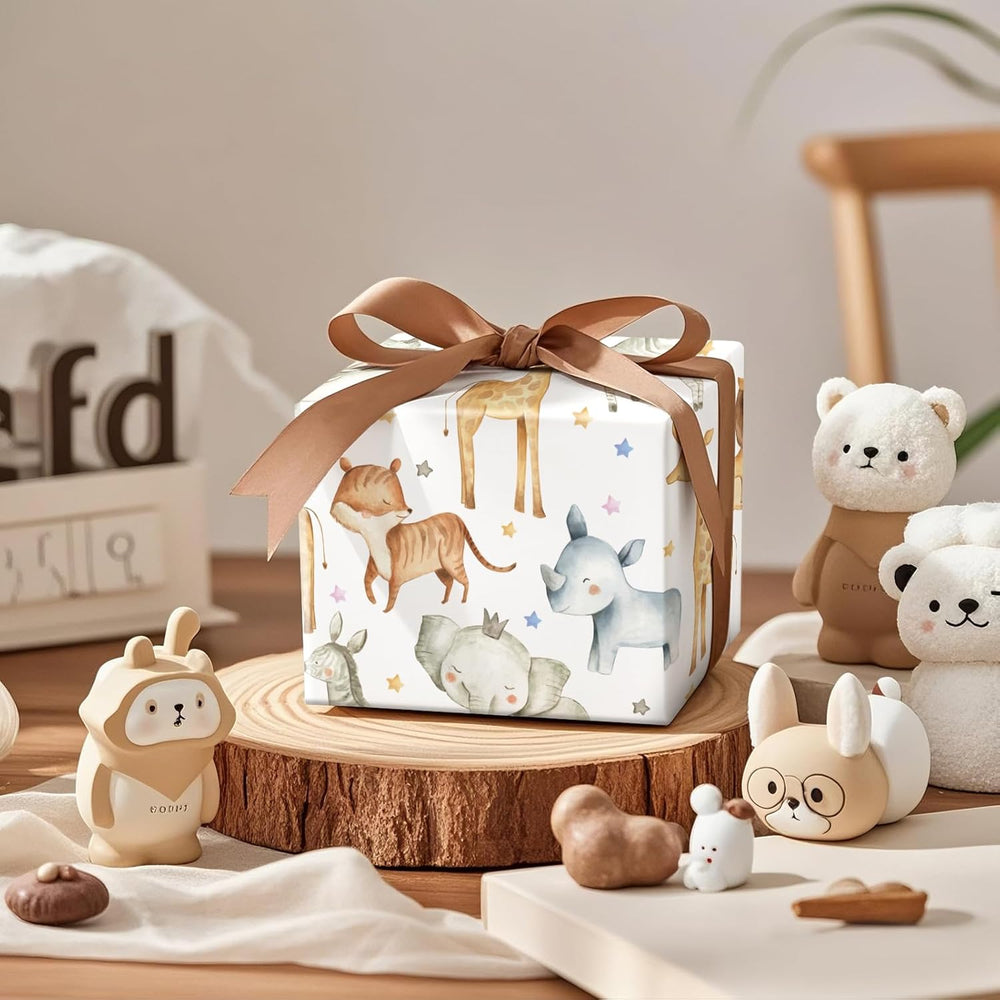 | Adorable Wrapping Paper: The Jungle Animal Wrap Paper Features Cute Watercolor Illustrations Of Elephant, Giraffe, Zebra And Lion, This Wrapping Paper Brings A Playful And Charming Vibe, Perfect For Kids' Gifts And Celebrations Easy To Store: The 17 Inches Wide By 16.4 Feet Long Is Designed For Convenience. The Compact Size Suitable For Small And Medium Gift Wrapping Paper, While Being Easy To Store Among Your Craft Supplies High-Quality Paper: Crafted With Durable Paper, This Gift Wrap Offers Excellent Strength And Reliability. Tear-Resistant And Durable, It Ensures Your Gifts Stay Beautifully Wrapped Without Ripping Or Wrinkling Eye-Catching Design For Kids: The Colorful Safari Animals And Soft Watercolor Patterns Attract Children’S Attention And Imagination, Making It A Hit For Themed Parties, Gifts And Special Occasions Perfect For All Occasion: Designed For Baby Boys, Girls And Kids, This Safari-Themed Gift Wrap Adds A Joyful Touch To Birthdays, Baby Showers, Nursery Celebrations And Jungle-Themed Events