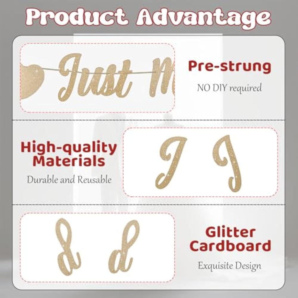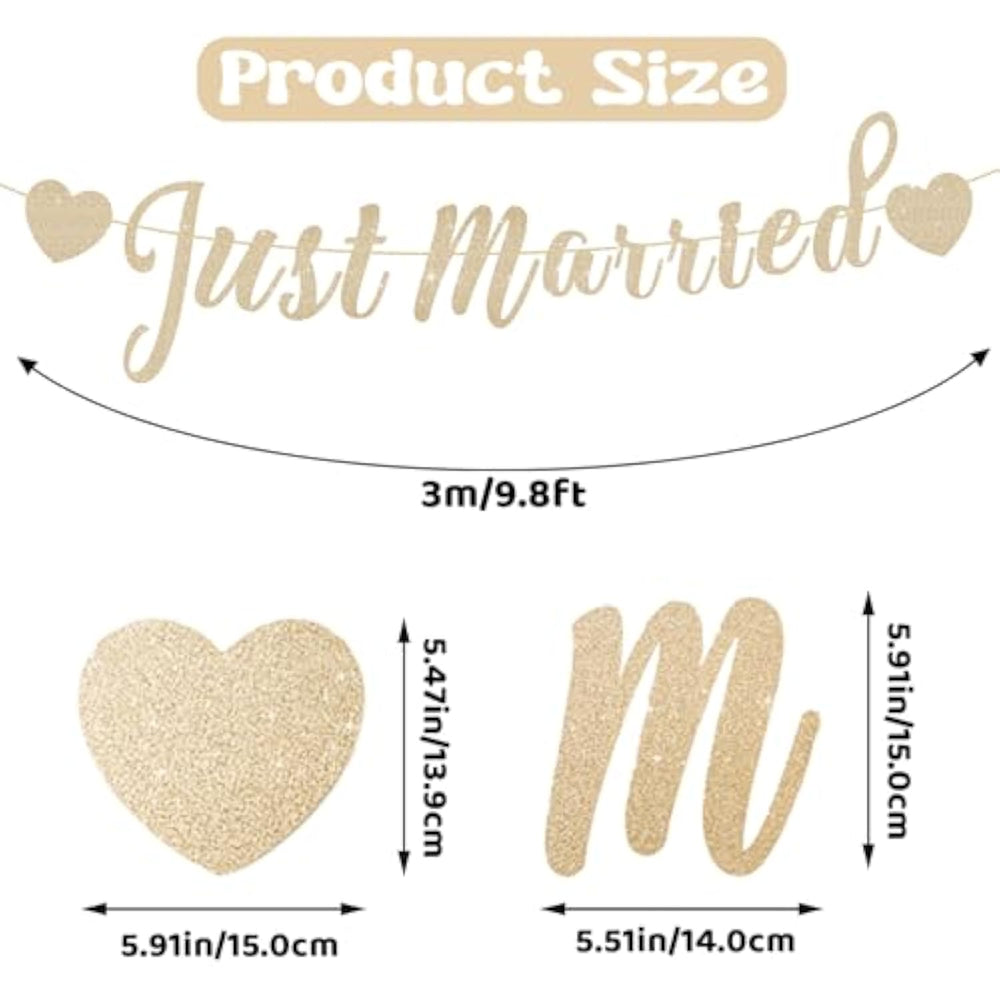 | Measurement Set:? Unfolding To 118 Inches In Length, This Banner Features The Clear "Just Married" Text, Two Heart Shapes (Each 5.91" X 5.47"), And A 3-Meter Rope Included. Ideal For Wedding Shower Decorations Or Doubling As Just Married Car Decorations To Add Festive Flair Instantly. | | Easy Setup, No Assembly Required:? Pre-Strung And Ready To Hang Straight From The Package, This Banner Eliminates Diy Hassles With Adjustable Rope Spacing. Simply Attach It Anywhere For Wedding Decorations For Home Party Or Just Married Decorations, Saving Time For Celebrations. | | Luxurious Appearance:?Crafted With Sparkling Gold Glitter In A Champagne Gold Hue, It Showcases Hearts And The Bold "Just Married" Design. Perfect As A Just Married Banner Or Bridal Shower Banner For Elegant, Eye-Catching Decor. | | Durable Party-Ready Material: Built With High-Quality Materials To Resist Wear, It Withstands Entire Events As A Just Married Sign For Outdoor Wedding Decorations. Use It Confidently Without Fading Or Damage During Long Parties. | | Versatile Use Locations: Adaptable For Walls, Arches, Trees, Ceilings, Or Tents, It Works As Wedding Signs For Reception Spots Or Couples Shower Decorations In Venues Like Photo Booths, Gift Tables, From Weddings To Bachelorette Parties. | |
